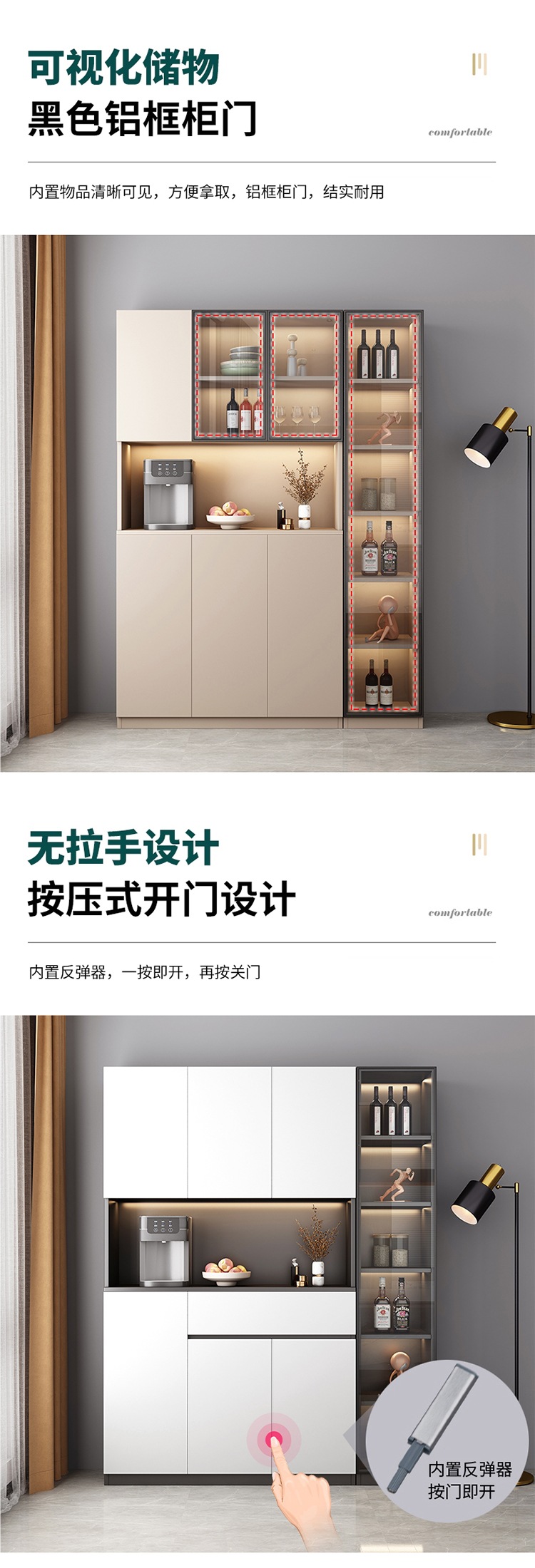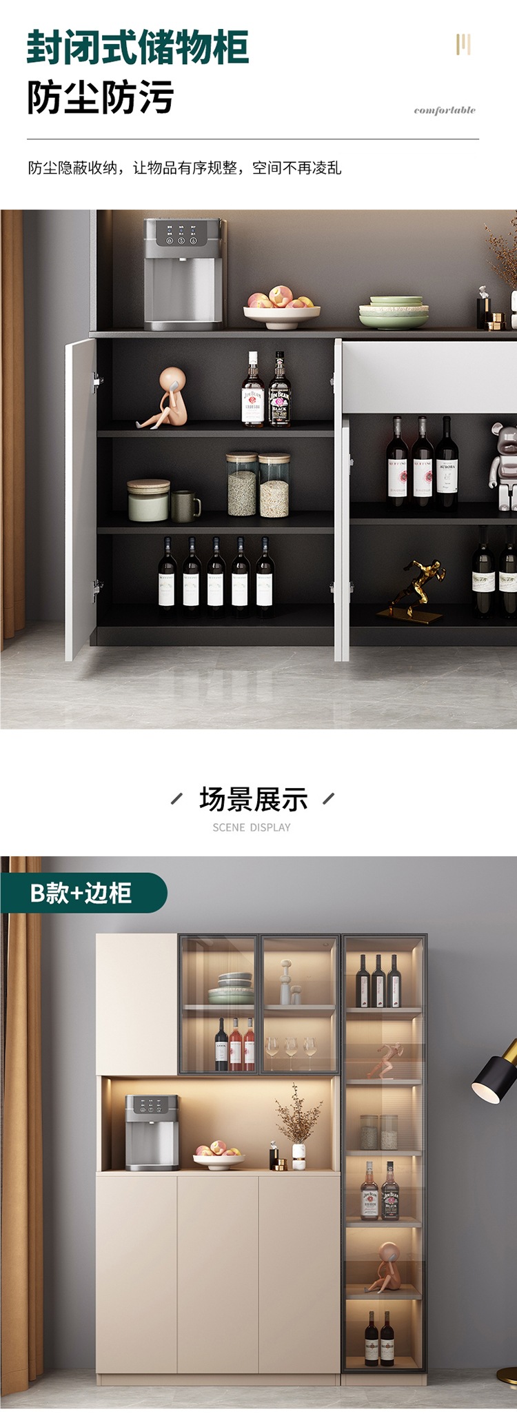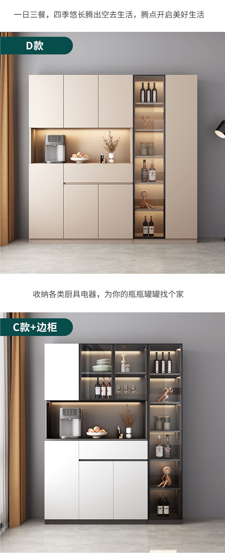 벽에 붙은 찬장, 거실, 가벼운 고급 수납장, 모던하고 심플한 레스토랑 주방 캐비닛, 수납장, 차 수납장스토어 가기