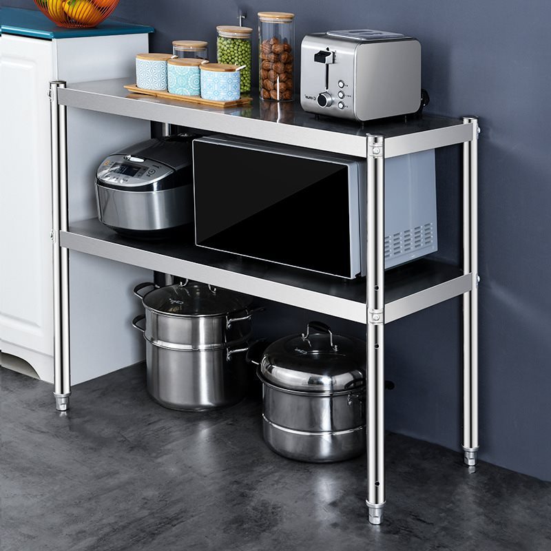주방 가정용 스테인레스 스틸 보관 랙 냄비 주방 용품 보관 랙 바닥 야채 보관 캐비닛 다층 전자 레인지 선반스토어 가기