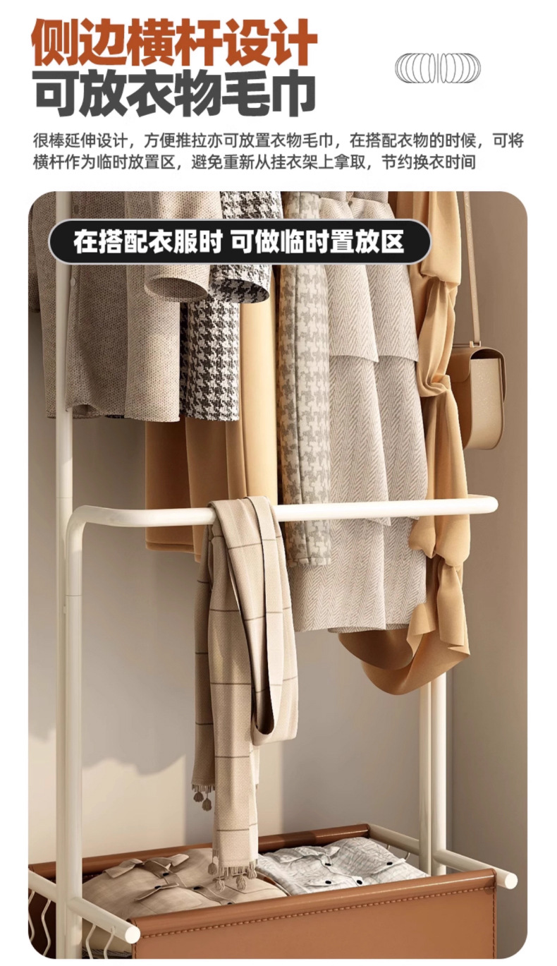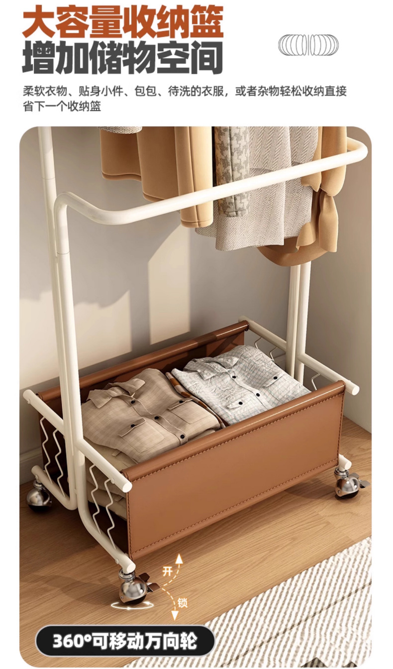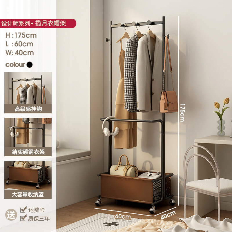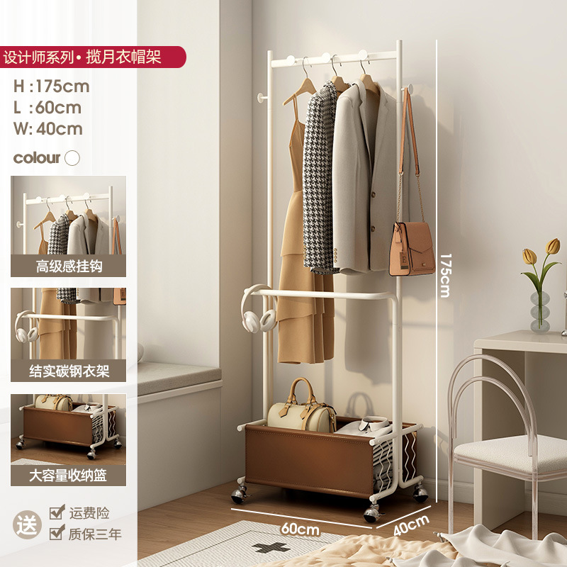 Sulipu 크림 코트 랙 침실 바닥 코트 랙 모바일 철 의류 홈 거실 옷걸이 Tω
