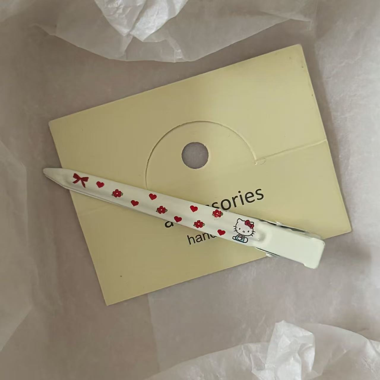 달콤한 멋진 빨간 고양이 인쇄 금속 긴 머리핀 일본 달콤한 다목적 소녀 머리핀 헤어 액세서리 도매