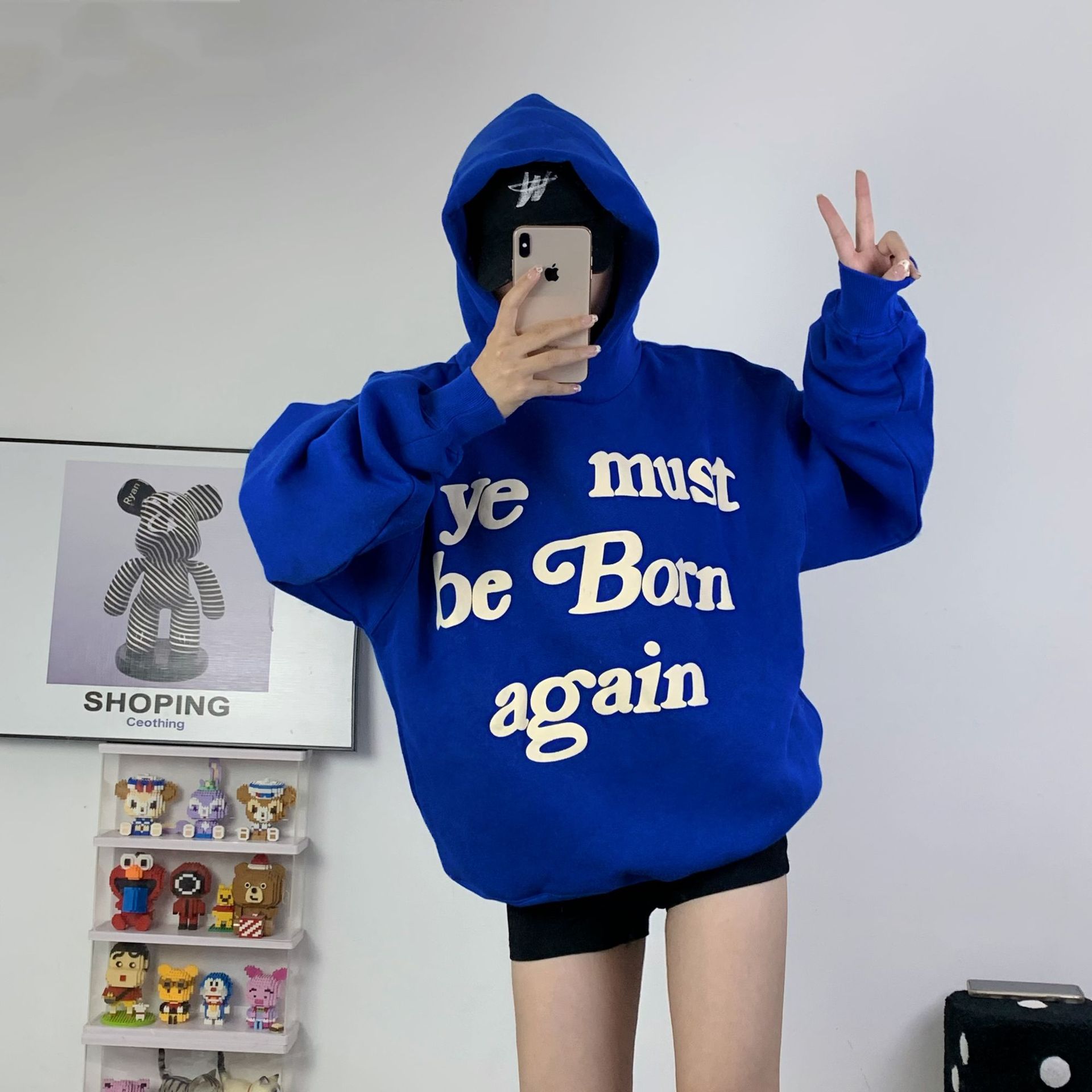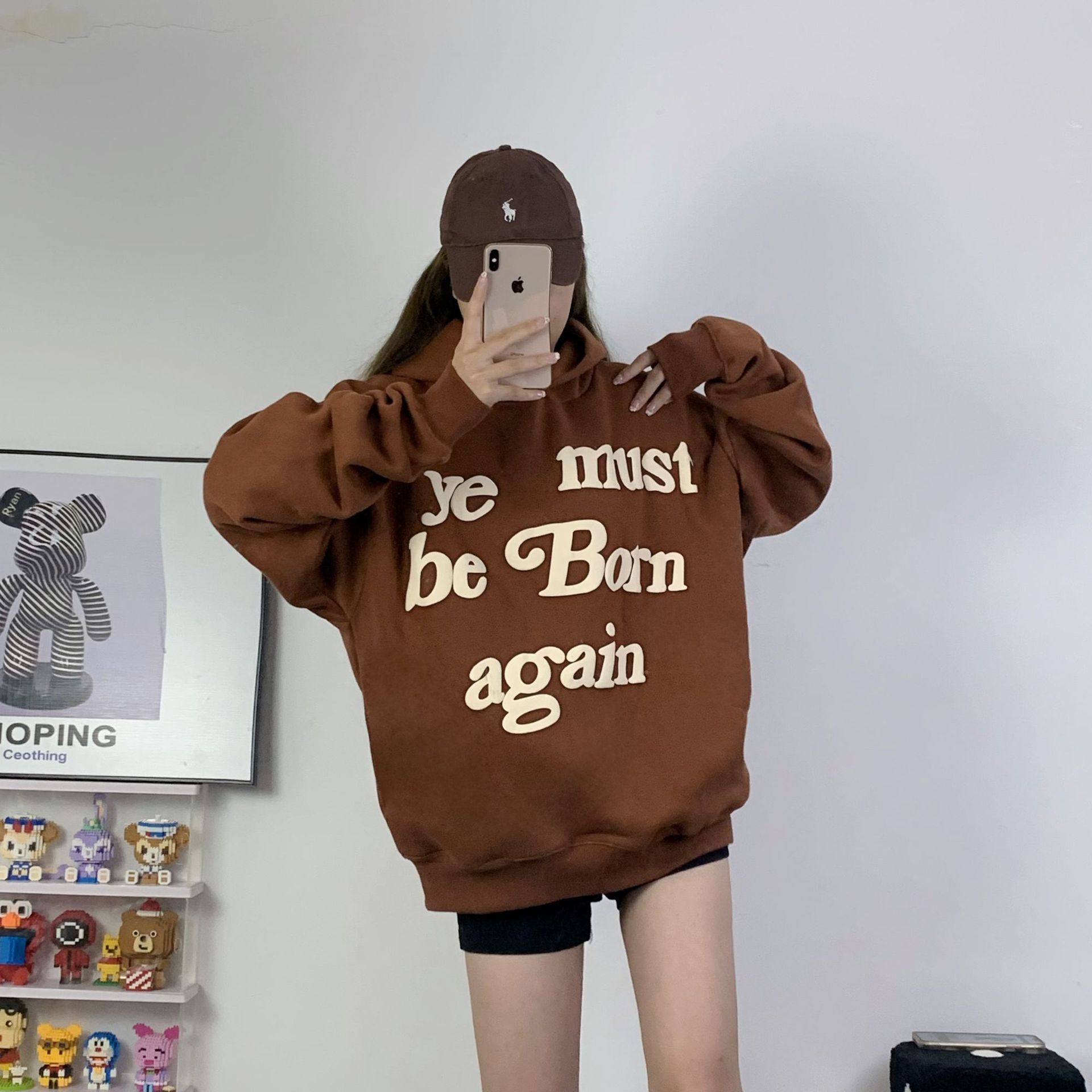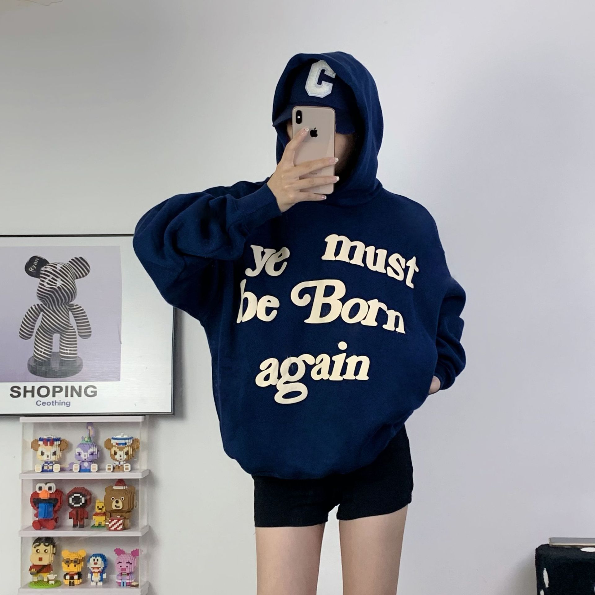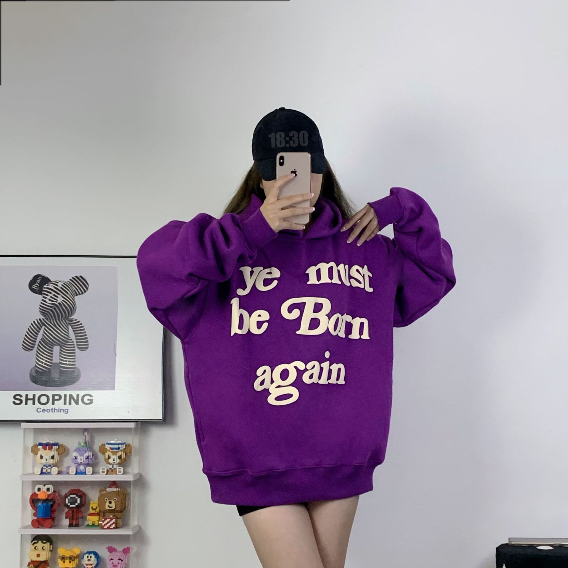 국경 간 제조업체 Kanye Jerry의 동일한 CPFM Rebirth 폼 문자 프린트 가을 겨울 벨벳 후드 티셔츠 트렌디