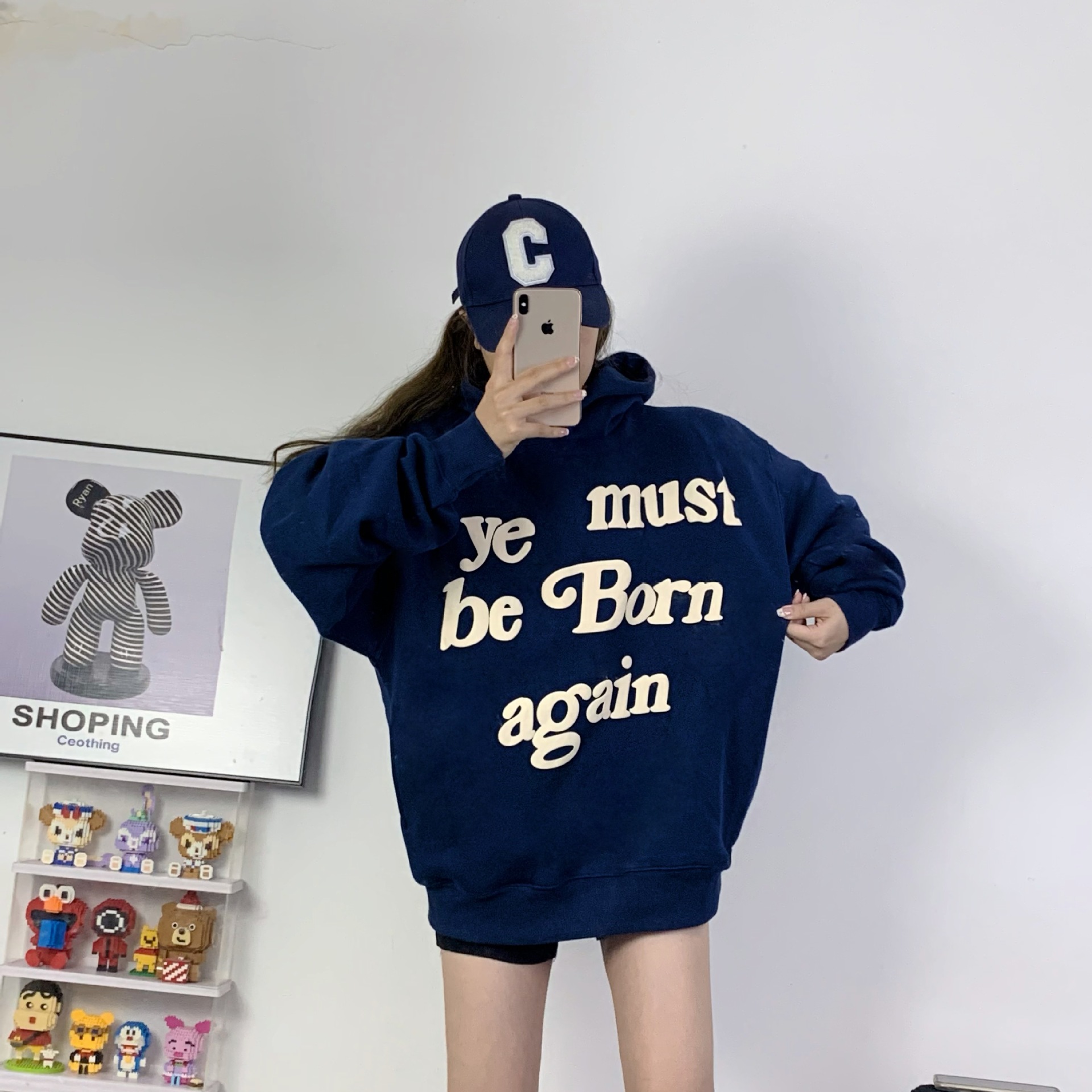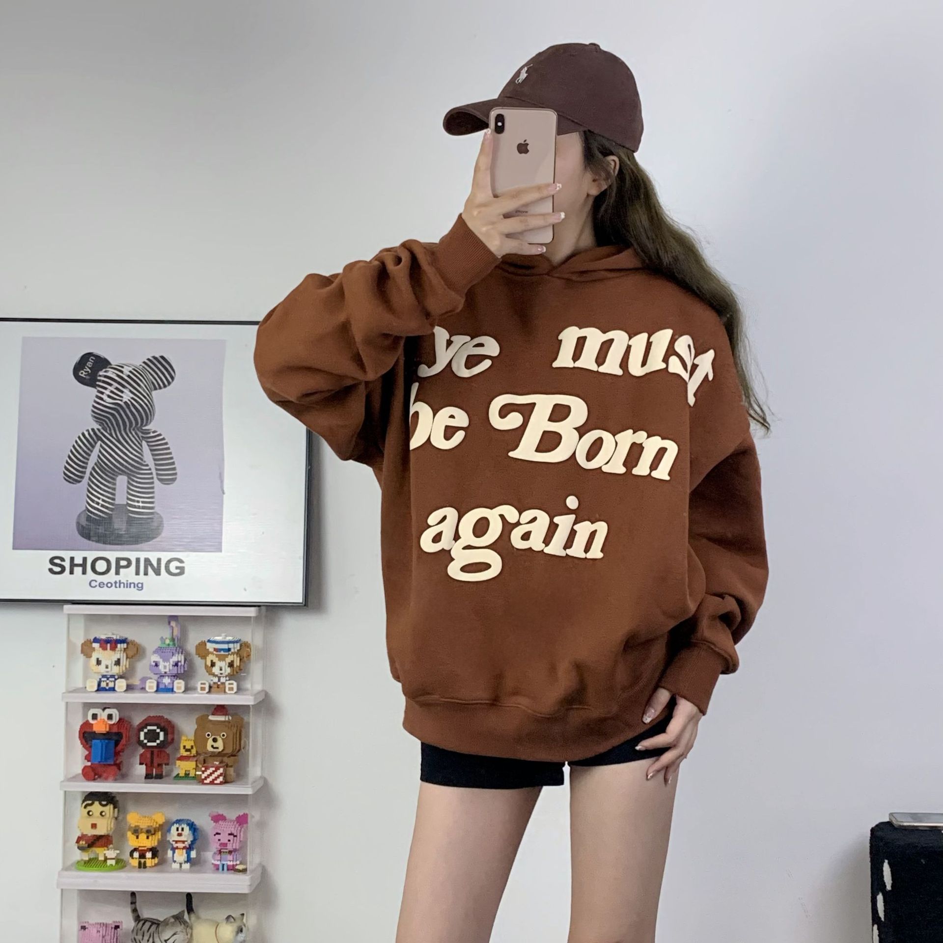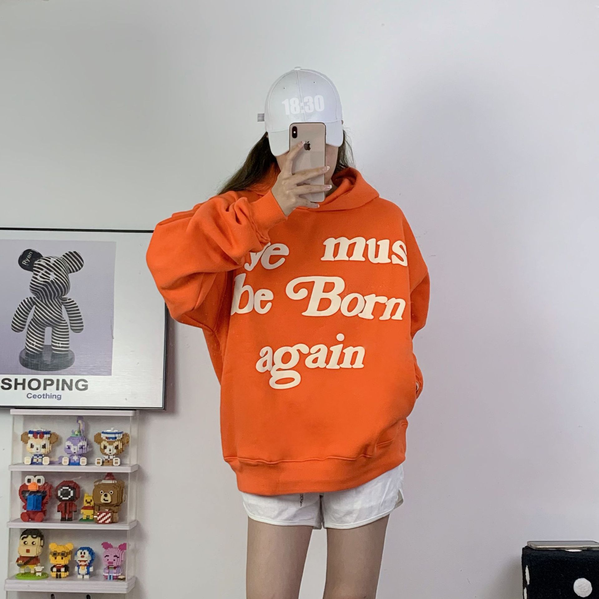 국경 간 제조업체 Kanye Jerry의 동일한 CPFM Rebirth 폼 문자 프린트 가을 겨울 벨벳 후드 티셔츠 트렌디