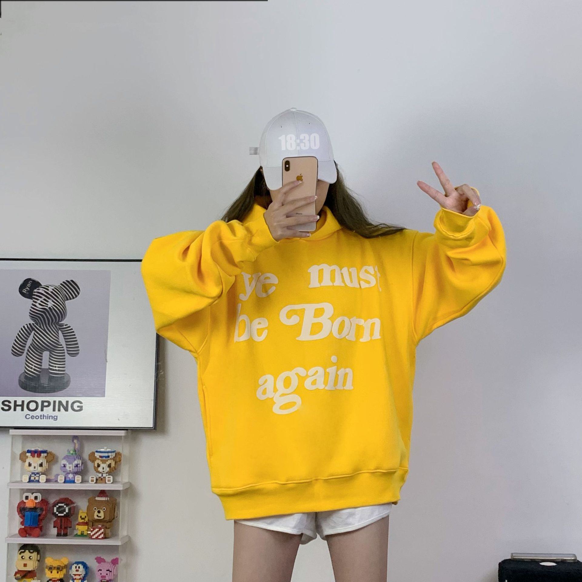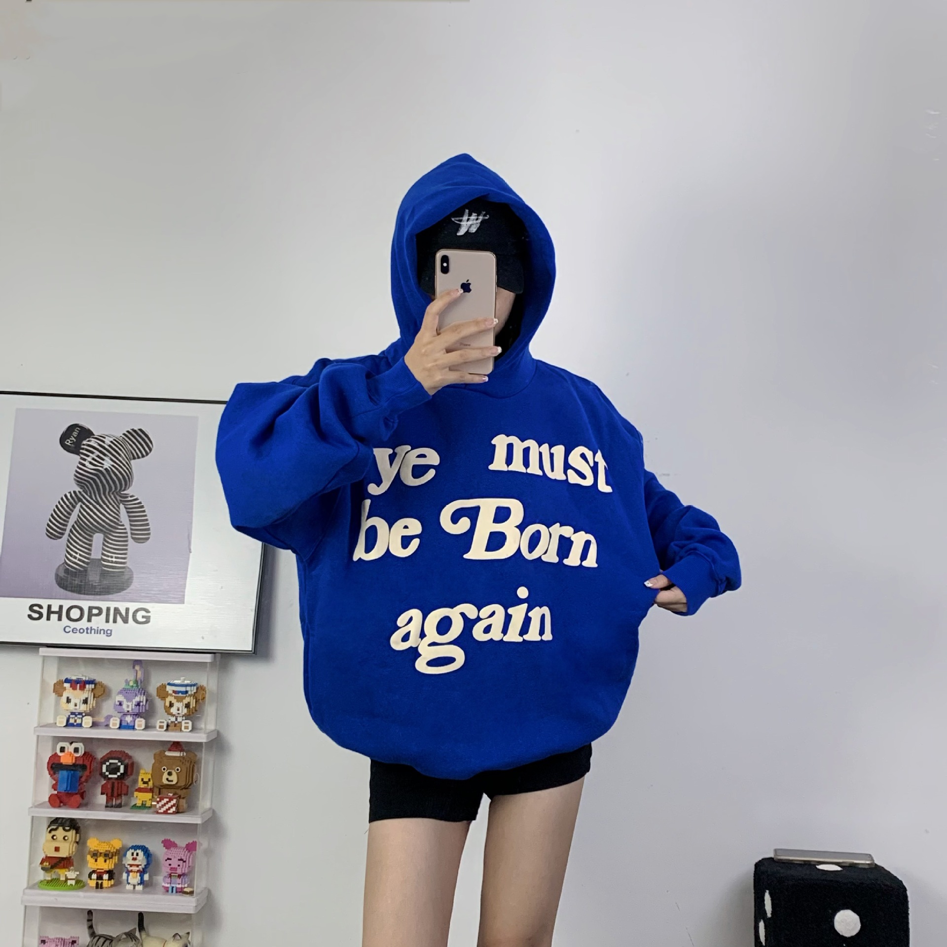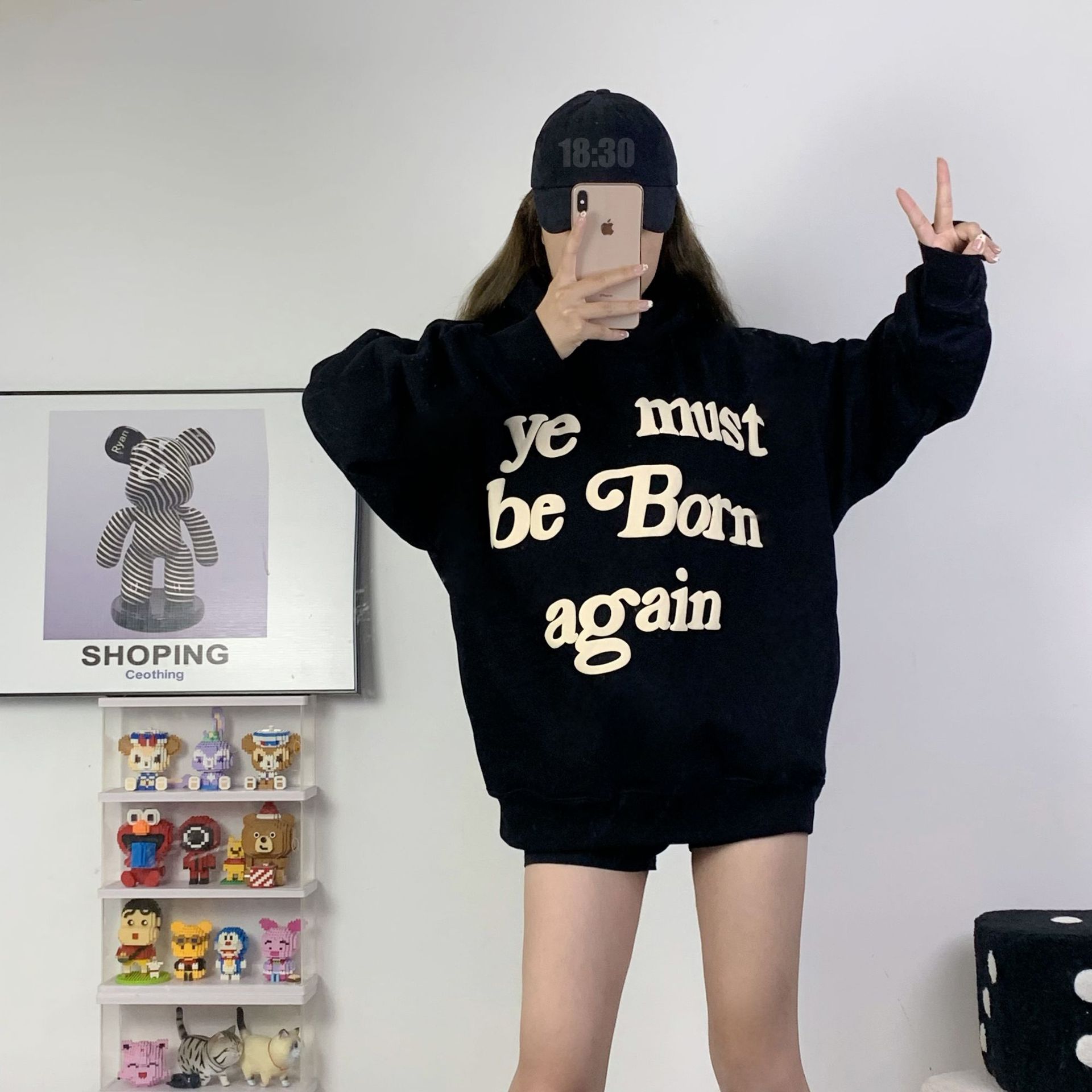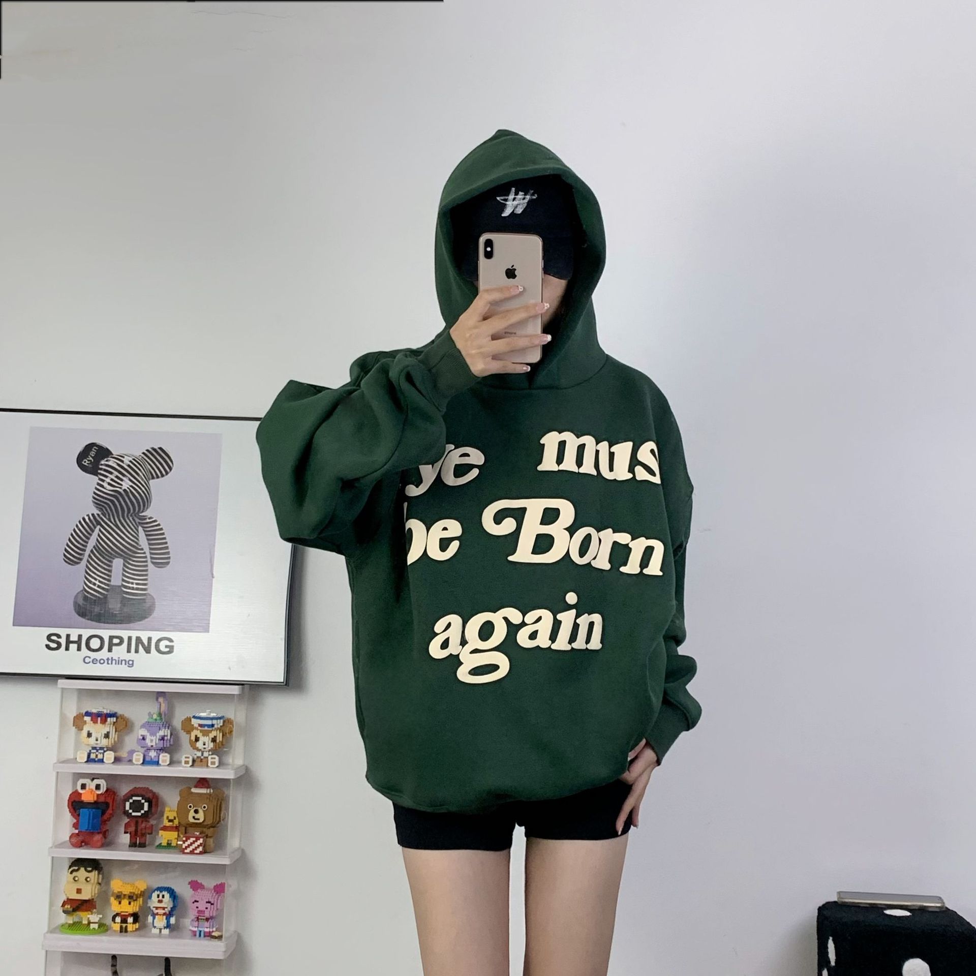 국경 간 제조업체 Kanye Jerry의 동일한 CPFM Rebirth 폼 문자 프린트 가을 겨울 벨벳 후드 티셔츠 트렌디