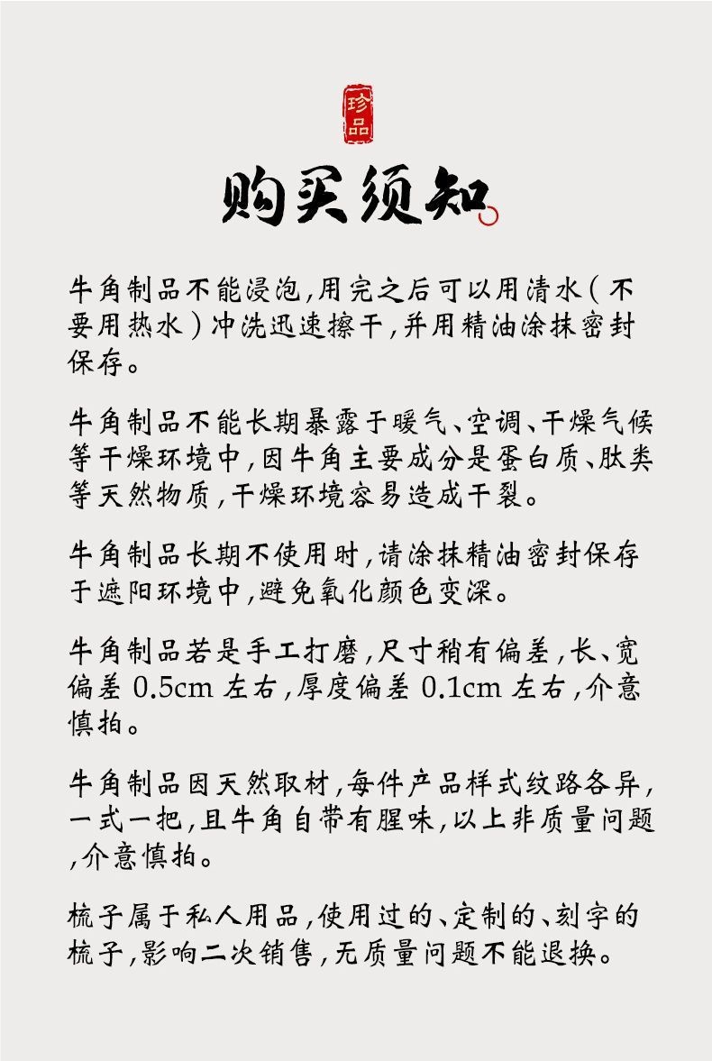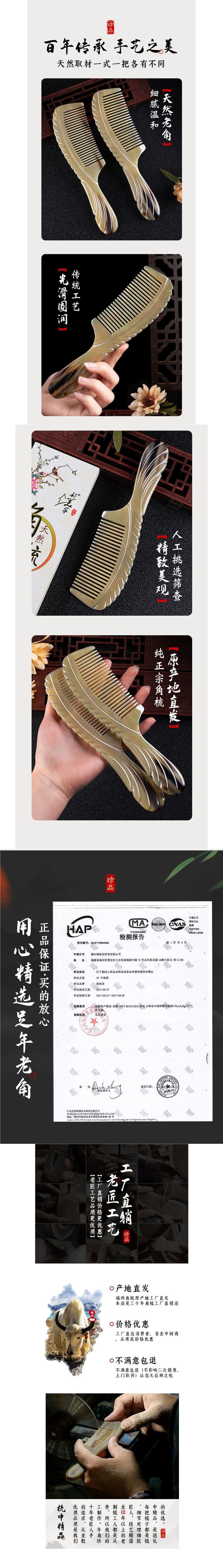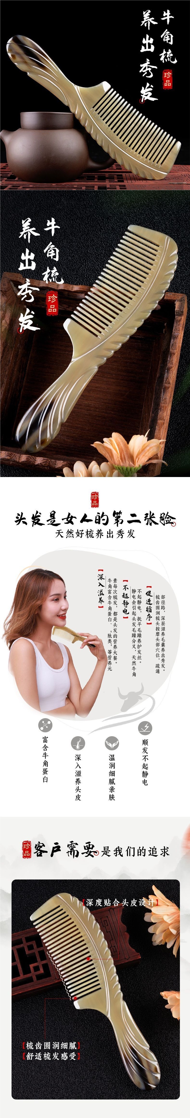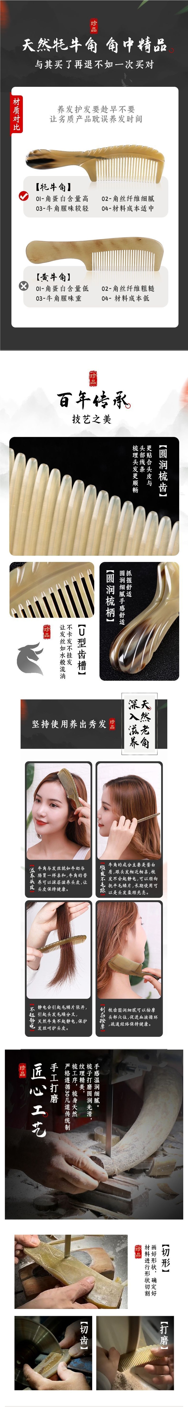 여성용 순수 천연 진짜 뿔 빗, 긴 머리 빗, 두꺼운 정품 남성용 가정용 두뇌 경락스토어 가기