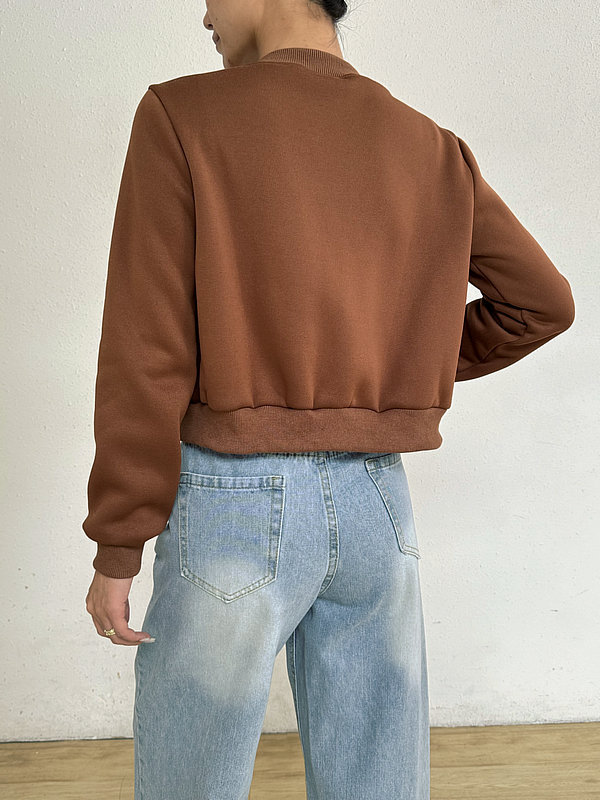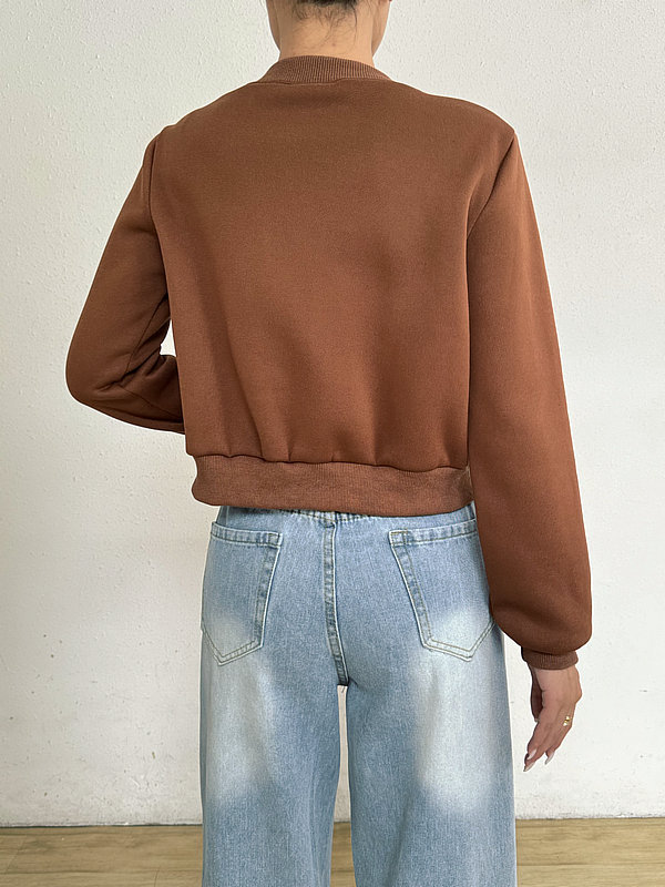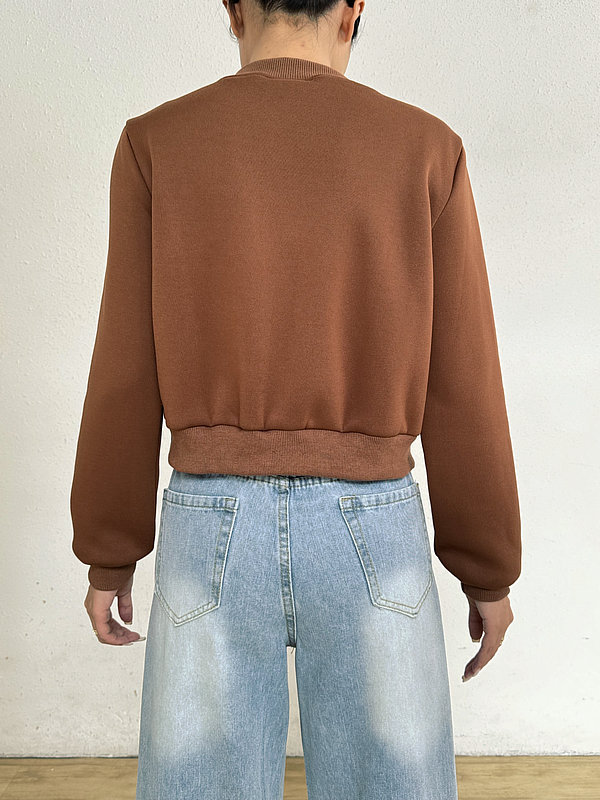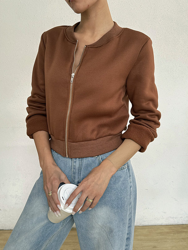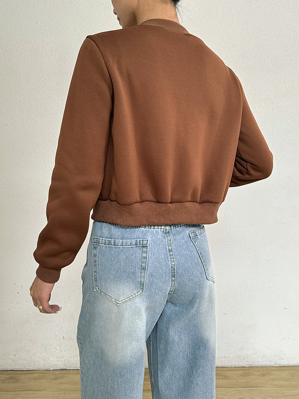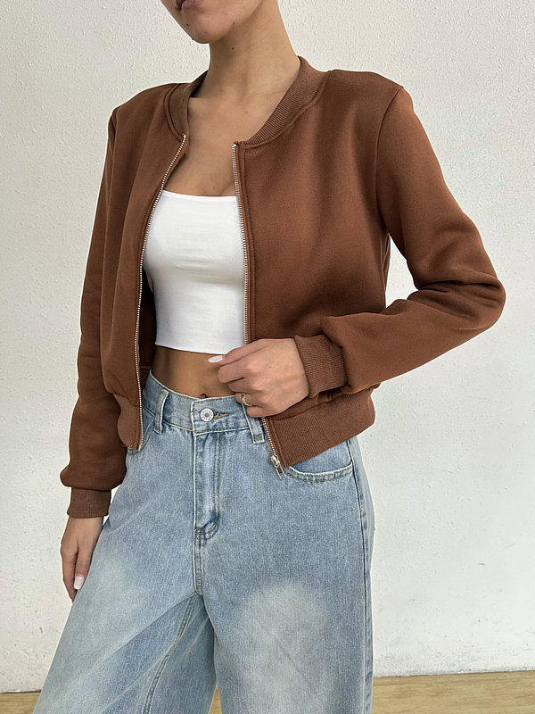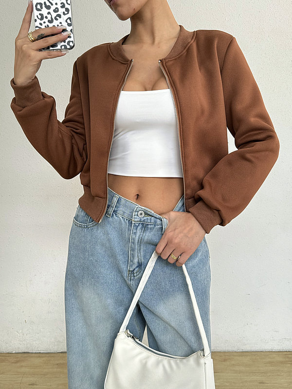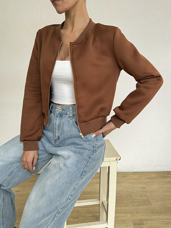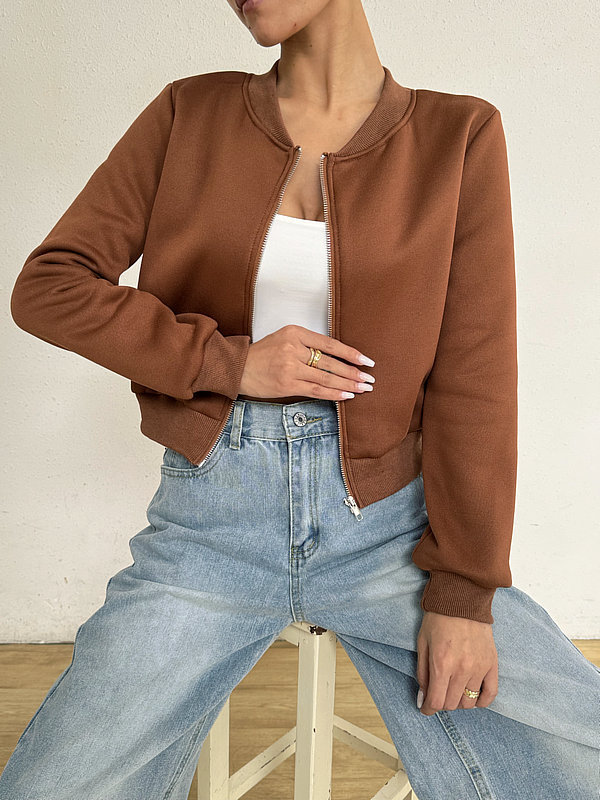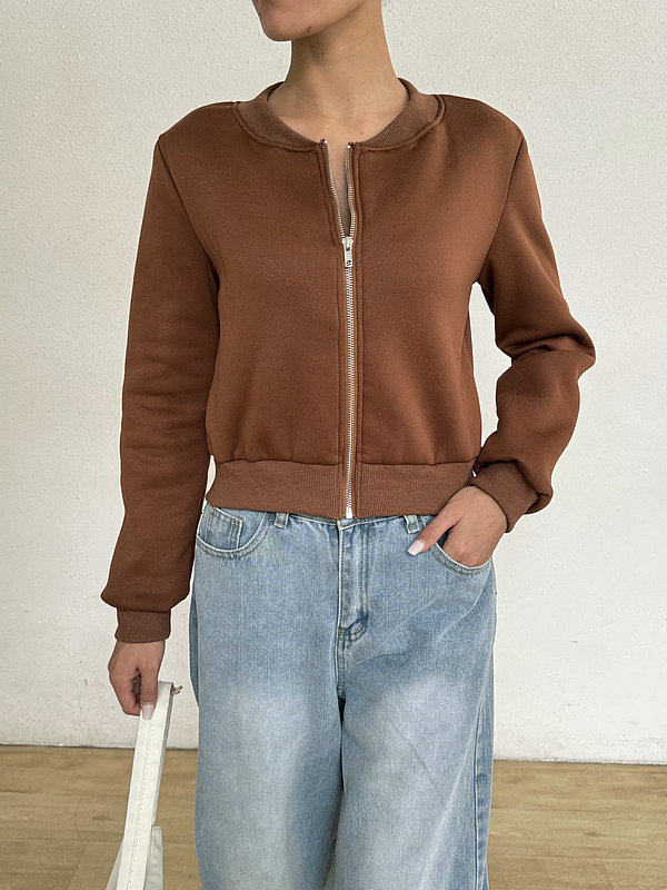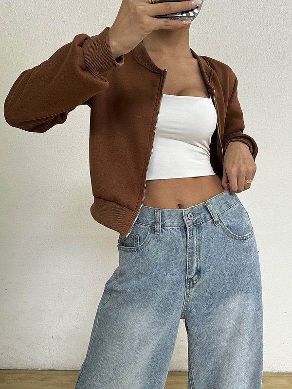2025 봄 신작 여성 탑 긴팔 라운드 넥 지퍼 솔리드 컬러 카디건 루즈 슬림 짧은 캐주얼 자켓