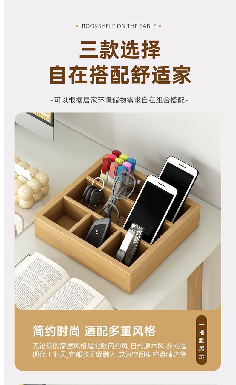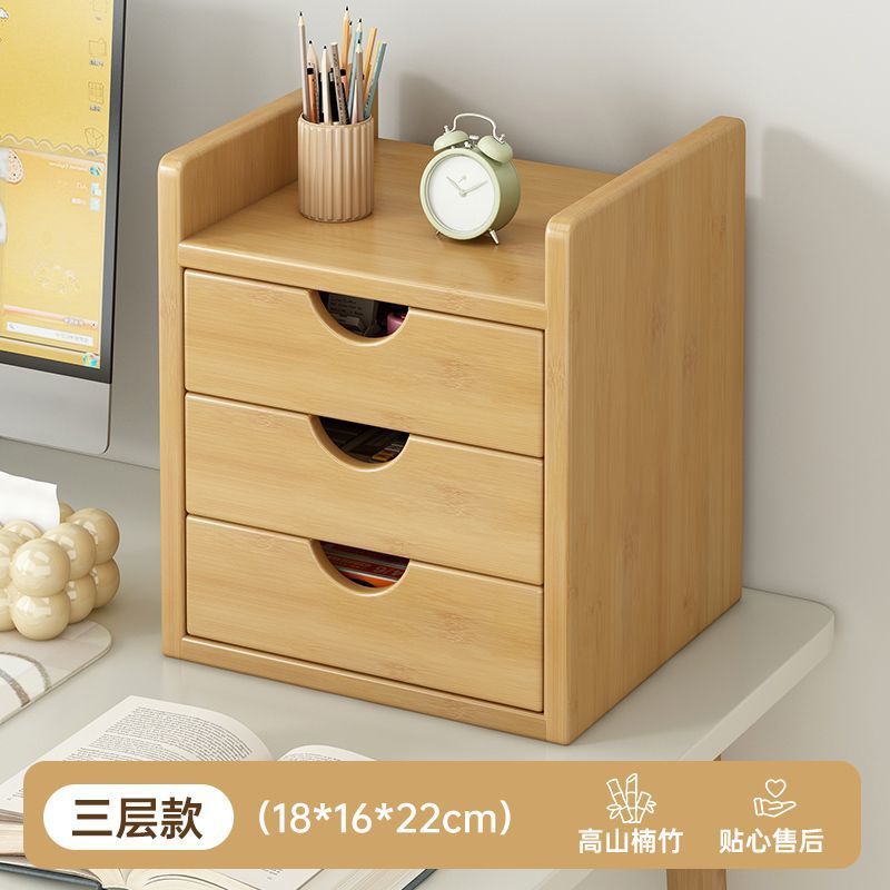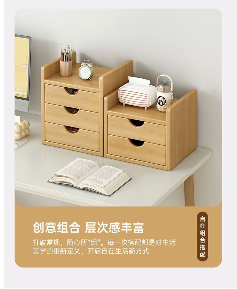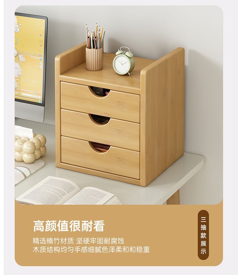 인스 스타일 신형 데스크탑 수납함, 대나무 가정용 사무실 서랍형 데스크탑 정리함, 약통, 방진 수납 선반스토어 가기