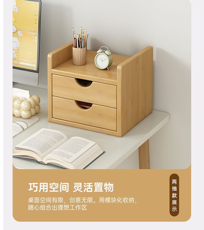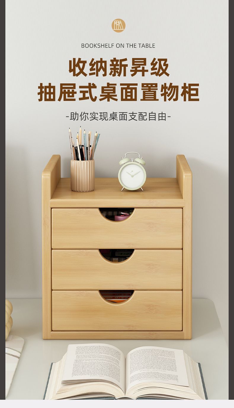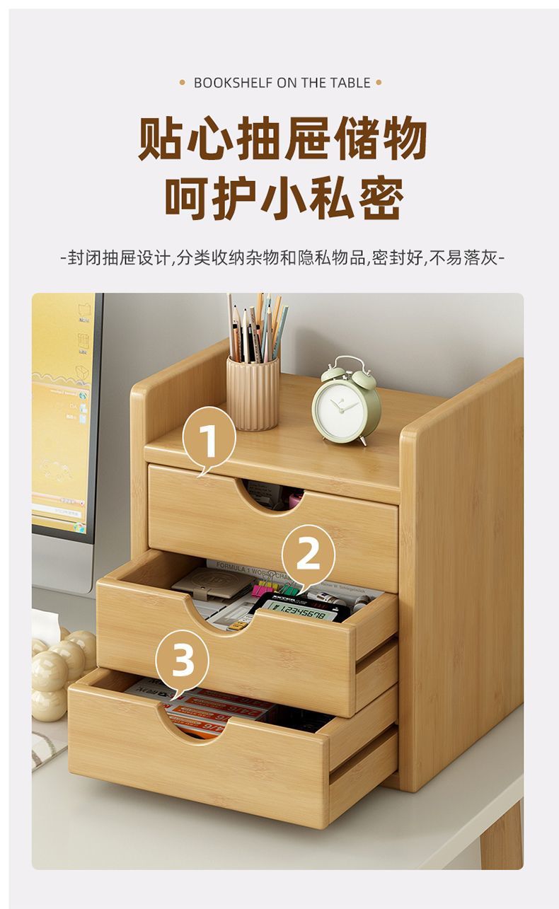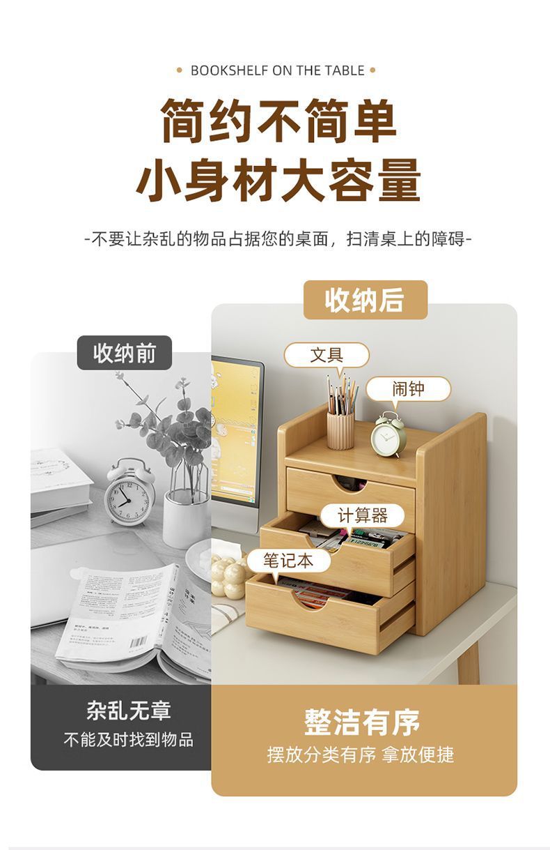 인스 스타일 신형 데스크탑 수납함, 대나무 가정용 사무실 서랍형 데스크탑 정리함, 약통, 방진 수납 선반스토어 가기