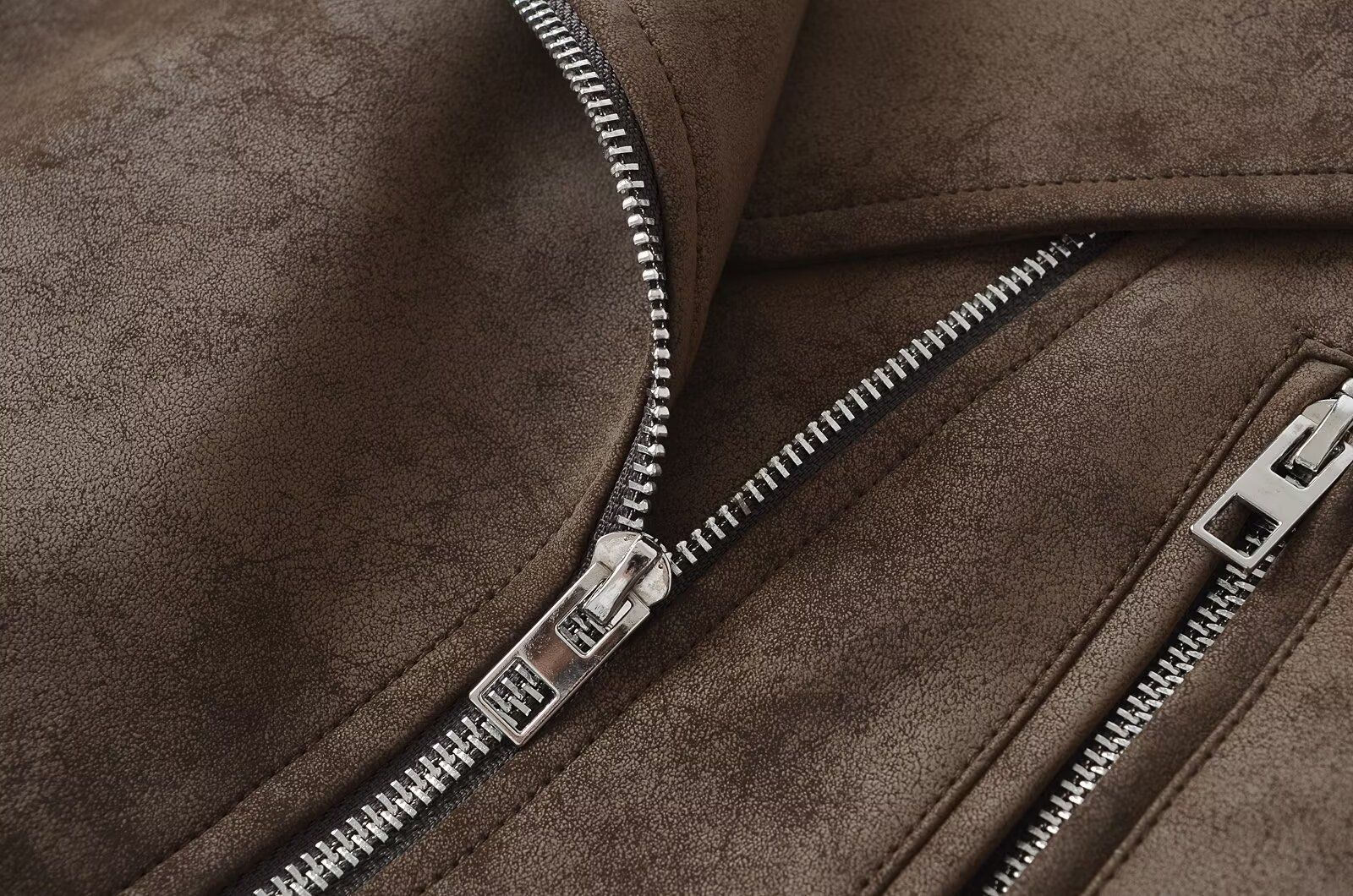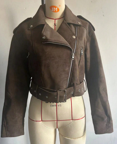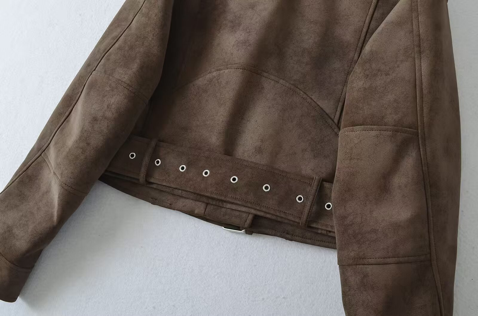2025 가을 새로운 유럽과 미국의 국경 간 여성 스트리트 패션 스웨이드 모조 가죽 오토바이 재킷 여성용 짧은 재킷
