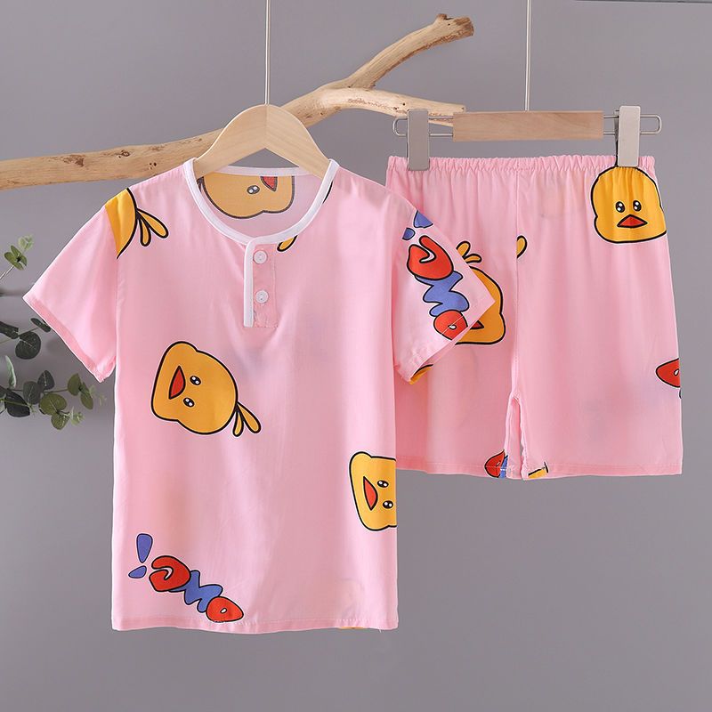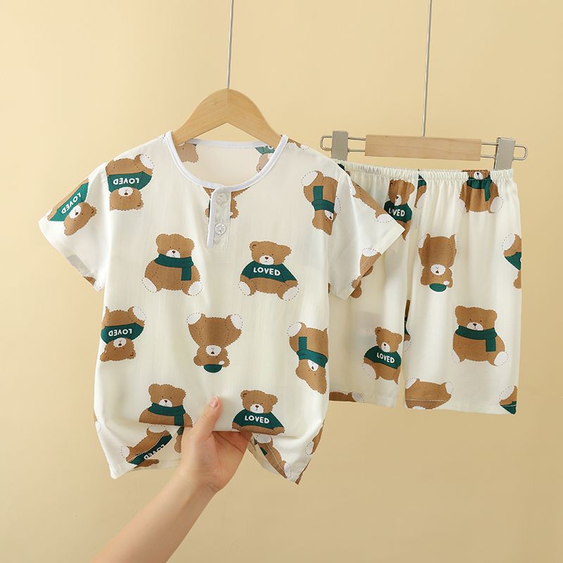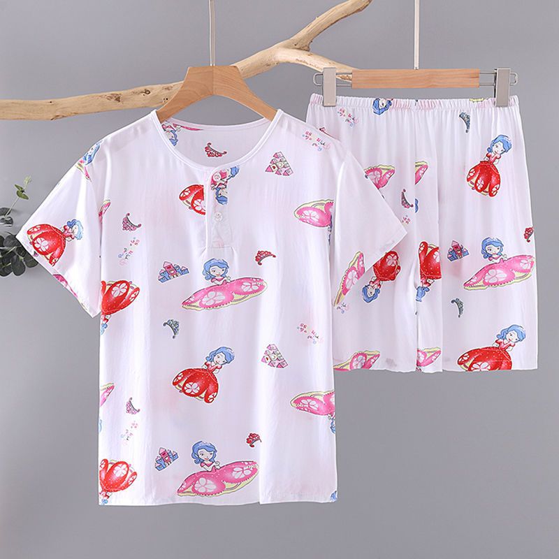 여름 어린이 면 실크 잠옷 반팔 반바지 정장 면 실크 소년과 소녀 중대형 어린이 아기 얇은 가정복스토어 가기