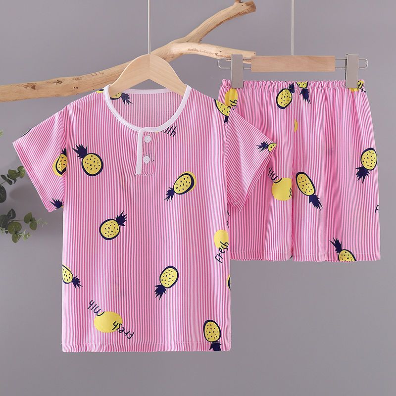 여름 어린이 면 실크 잠옷 반팔 반바지 정장 면 실크 소년과 소녀 중대형 어린이 아기 얇은 가정복