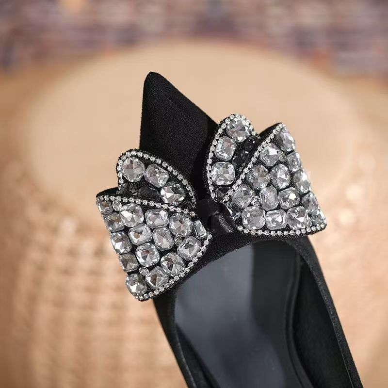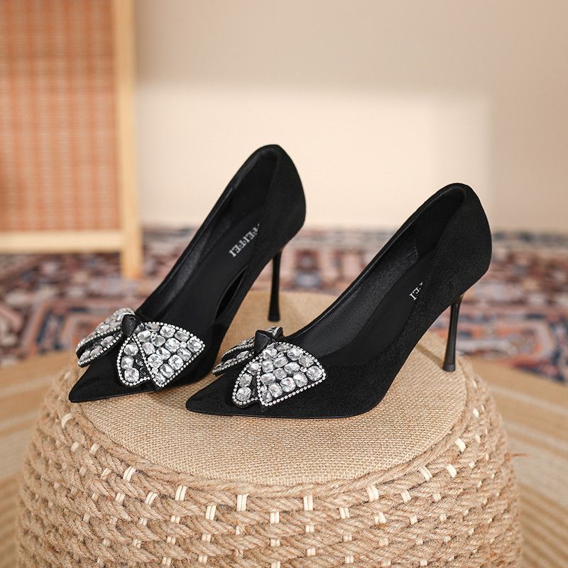여성을 위한 얇은 굽의 우아한 여성용 매일 리본 하이힐 2025 새로운 스타일의 뾰족한 발가락 다용도 패션 펌프스스토어 가기