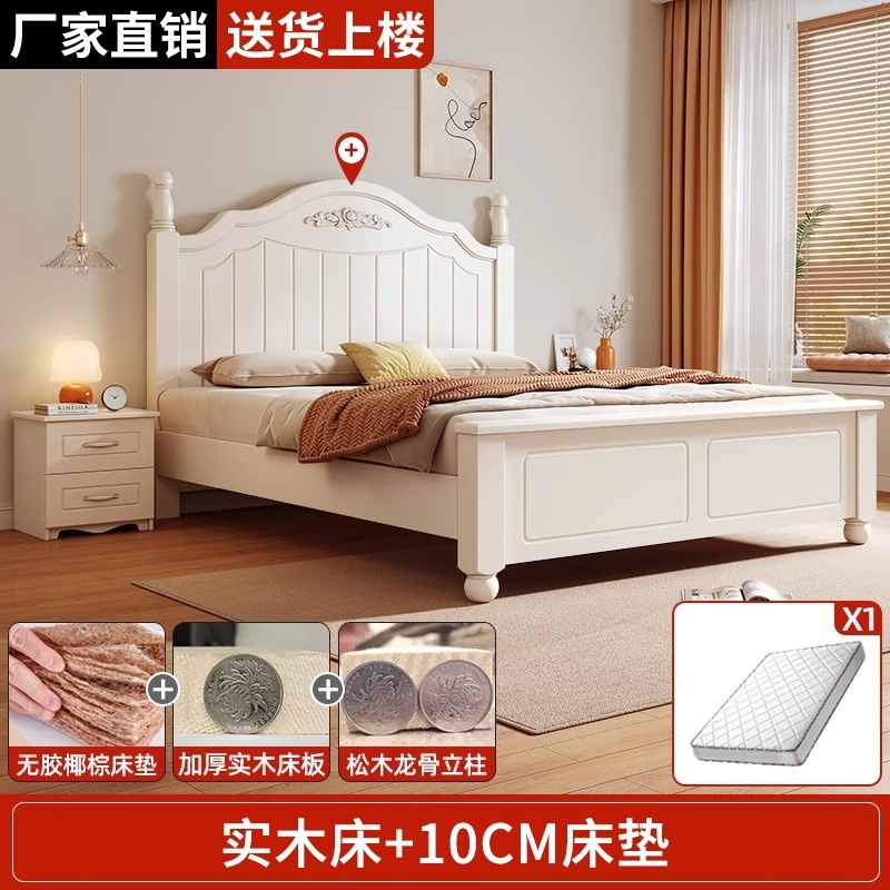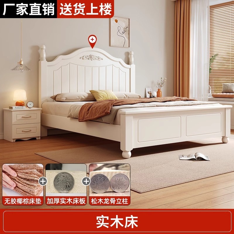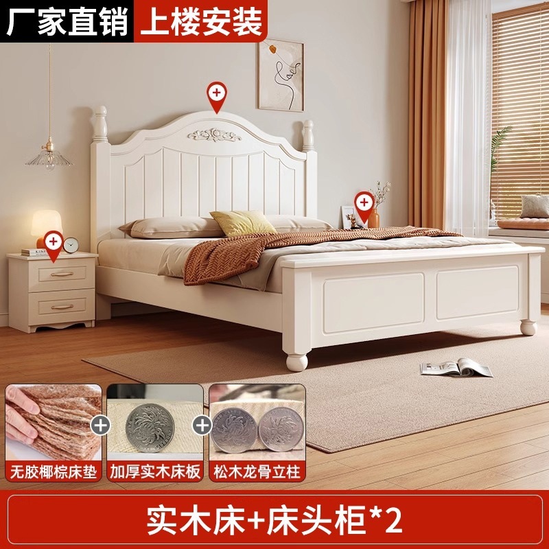 원목 침대 모던 심플 1.8m 유럽식 마스터 침실 더블 침대 1.5m 임대용 침대 1.2m 경제적인 침대 프레임