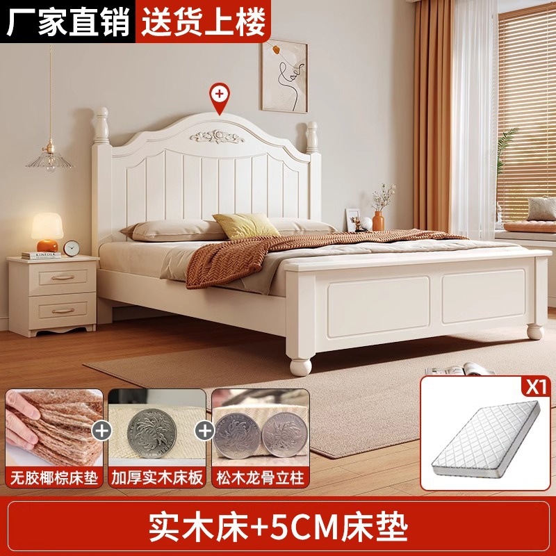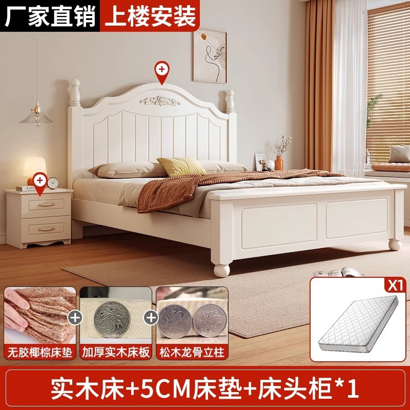 • 두꺼운 원목 침대+5cm 매트리스+캐비닛*1+집까지 무료 배송