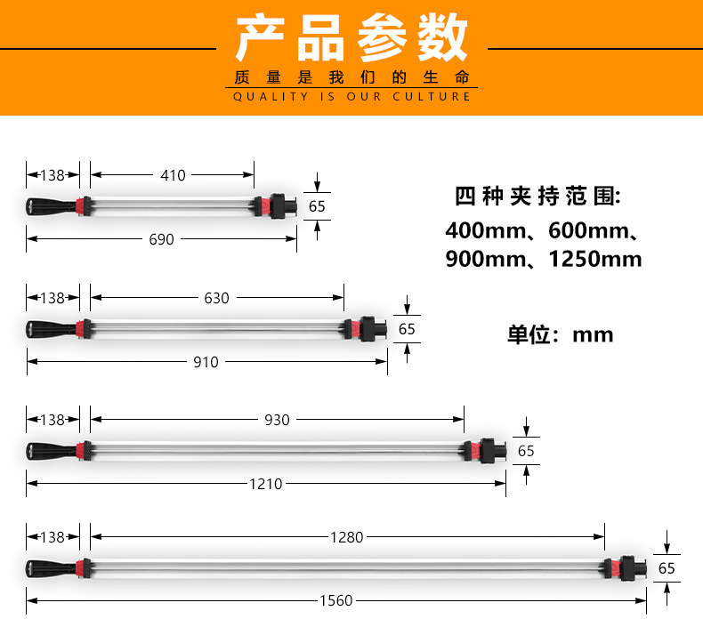 • 강화 버전의 후원자 클램핑 범위는 400mm( 16inch )입니다.