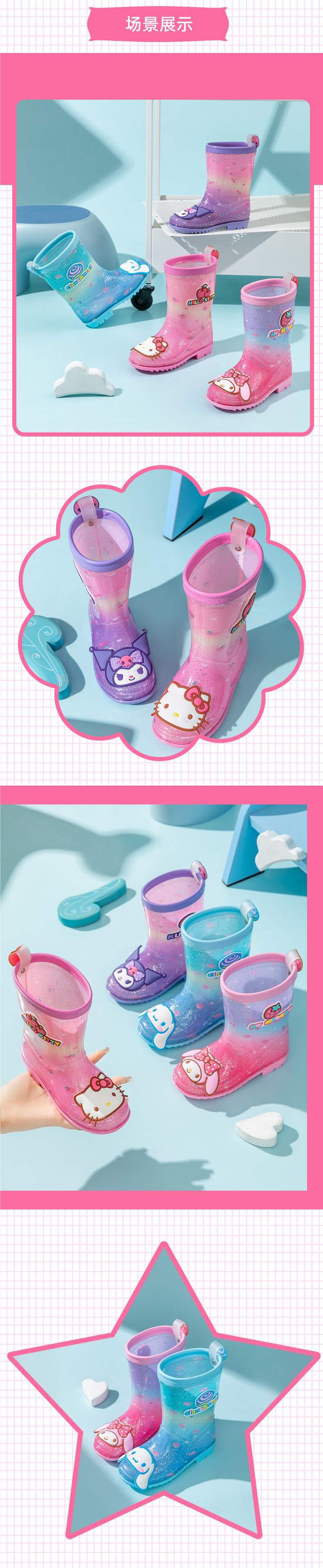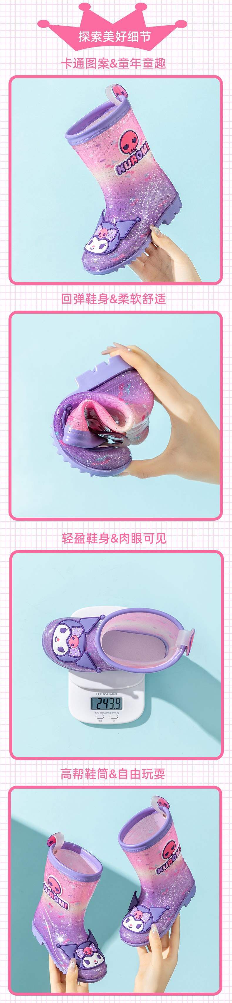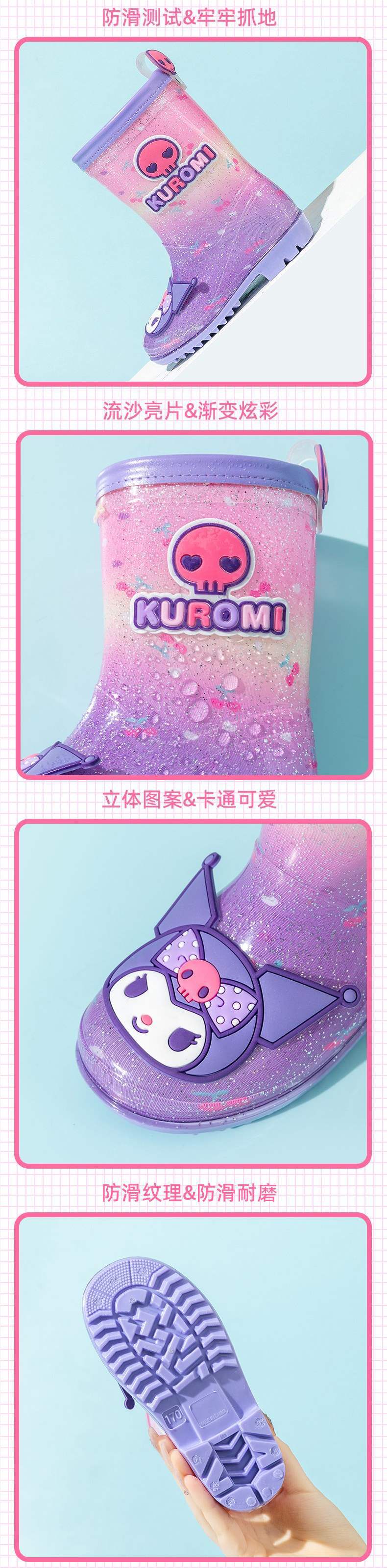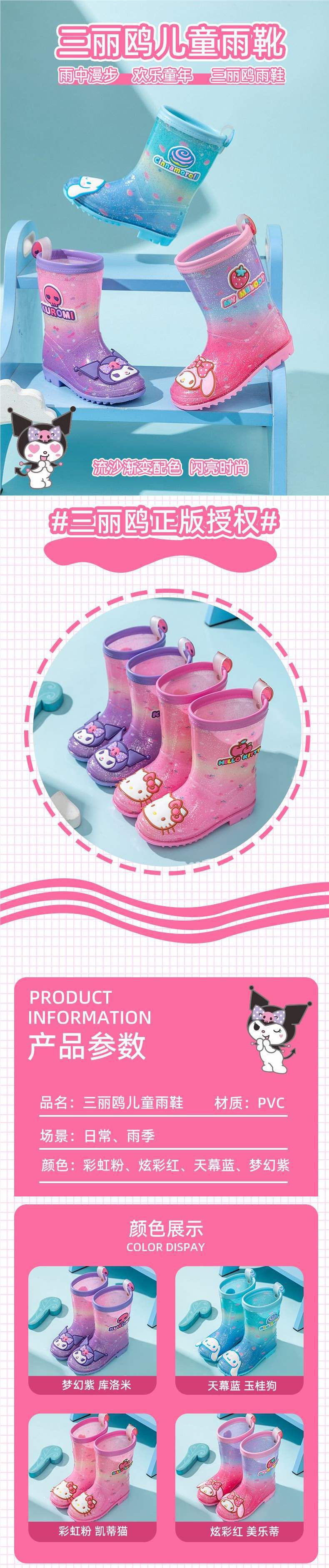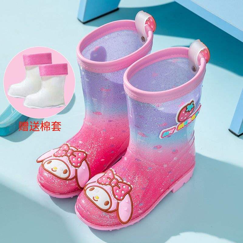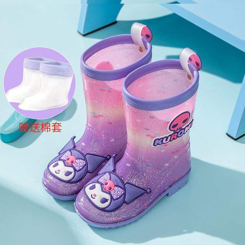 멜로디 어린이 장화 쿠로미 여아 미끄럼 방지 여아 장화 아기 덧신 초등학생 아동 워터슈즈