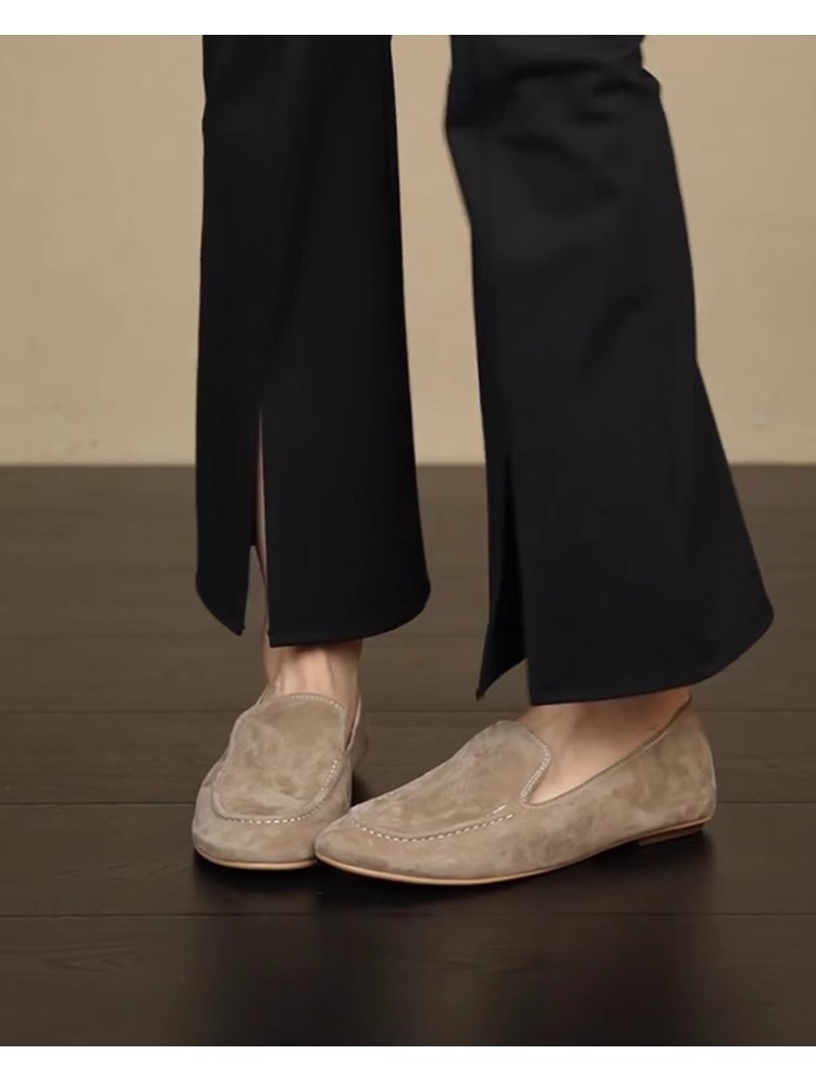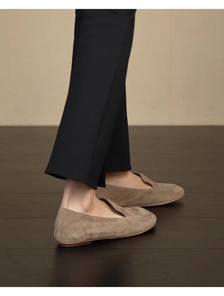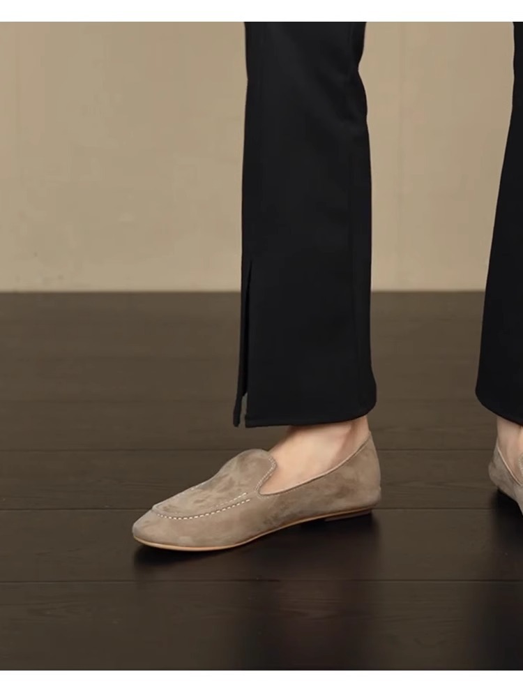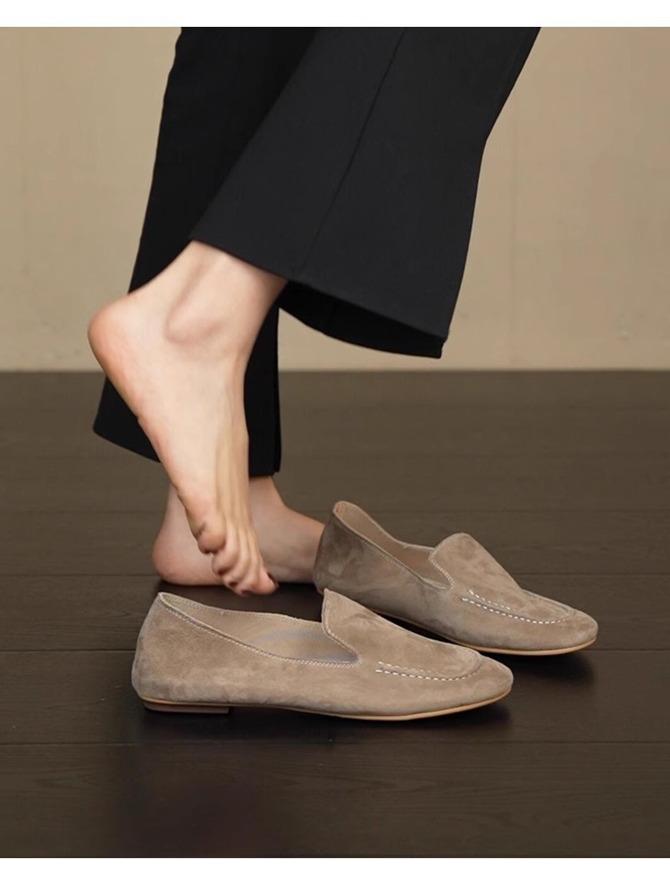 양가죽 버전 ~ 미니멀리스트 레트로 슬립온 로퍼 여성 플랫 편안한 통근화 다용도 라운드 토 작은 가죽 신발스토어 가기