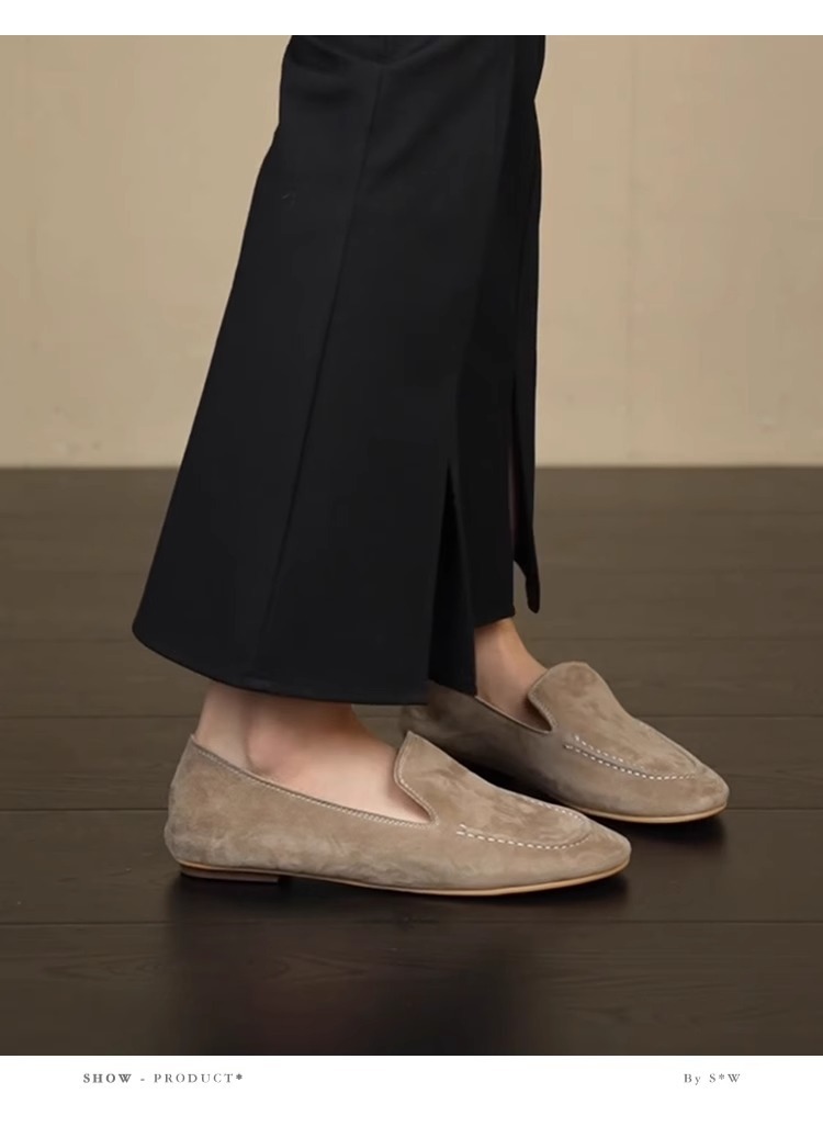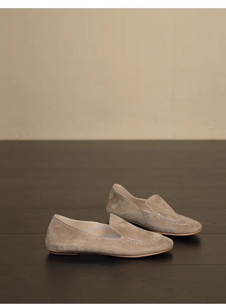양가죽 버전 ~ 미니멀리스트 레트로 슬립온 로퍼 여성 플랫 편안한 통근화 다용도 라운드 토 작은 가죽 신발