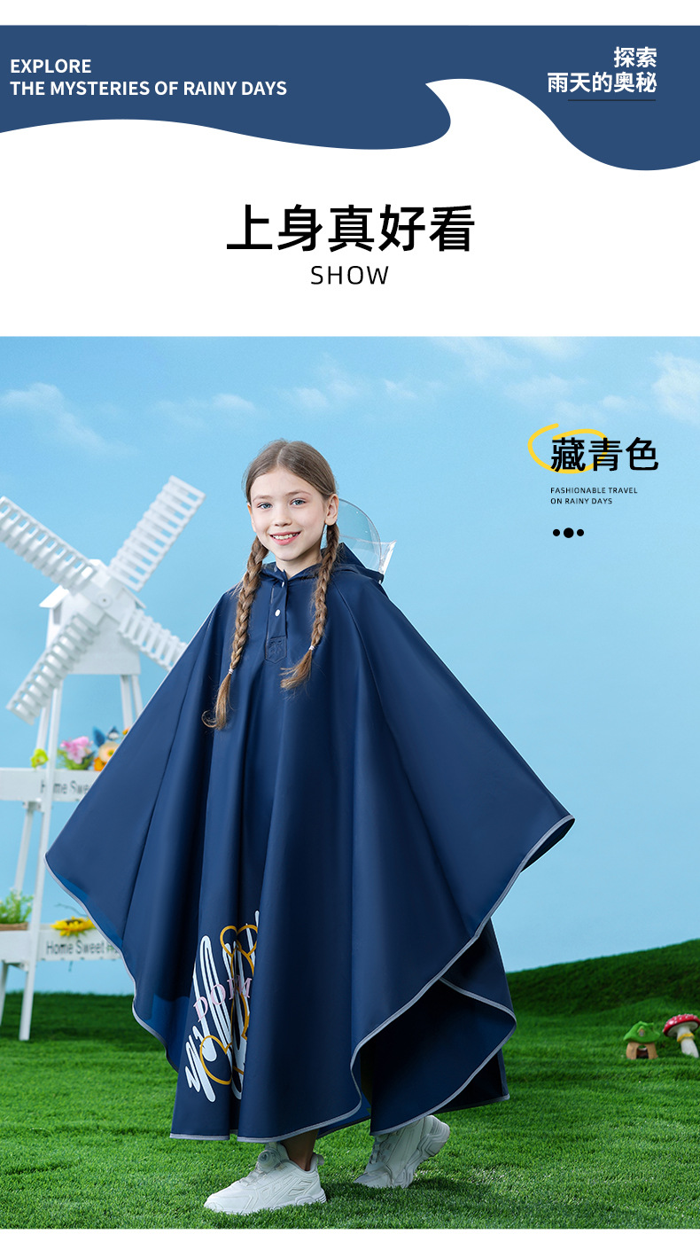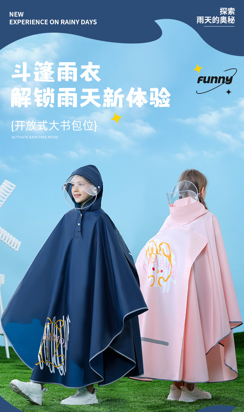 남아, 여아, 중학생, 초등학생을 위한 아동용 비옷, 책가방이 달린 방수, 사이클링 케이프 스타일 비옷스토어 가기