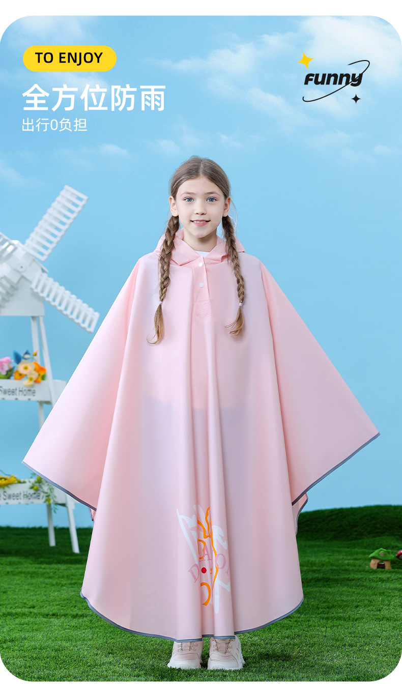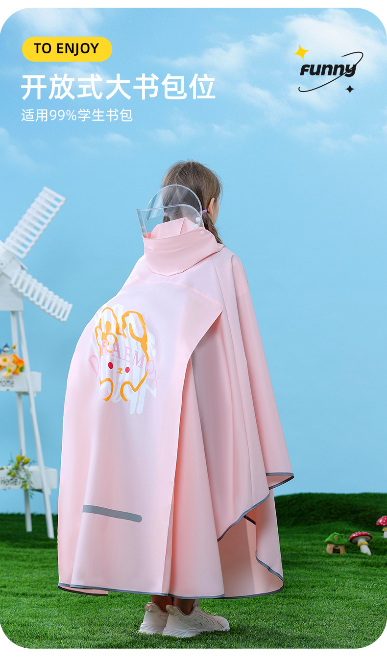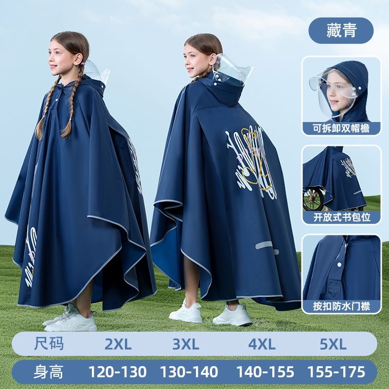 남아, 여아, 중학생, 초등학생을 위한 아동용 비옷, 책가방이 달린 방수, 사이클링 케이프 스타일 비옷