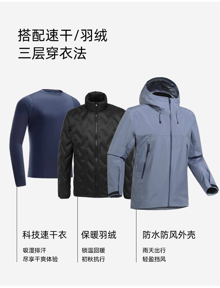 Niaojia의 새로운 SL 하드 쉘 재킷, 완전히 열 밀봉된 접착제 오버플로 단층 등산 재킷, 남성용 및 여성용 3-in-one 다운 재킷