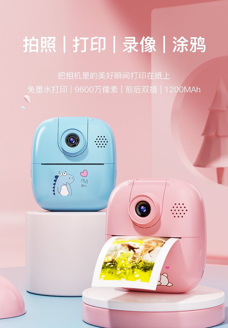 어린이용 폴라로이드 카메라는 사진을 찍고 디지털 장난감을 인쇄할 수 있습니다. 소년 소녀를 위한 휴대용 소형 미니 생일 선물