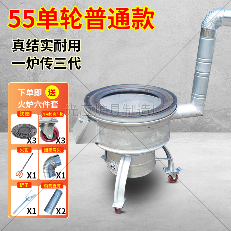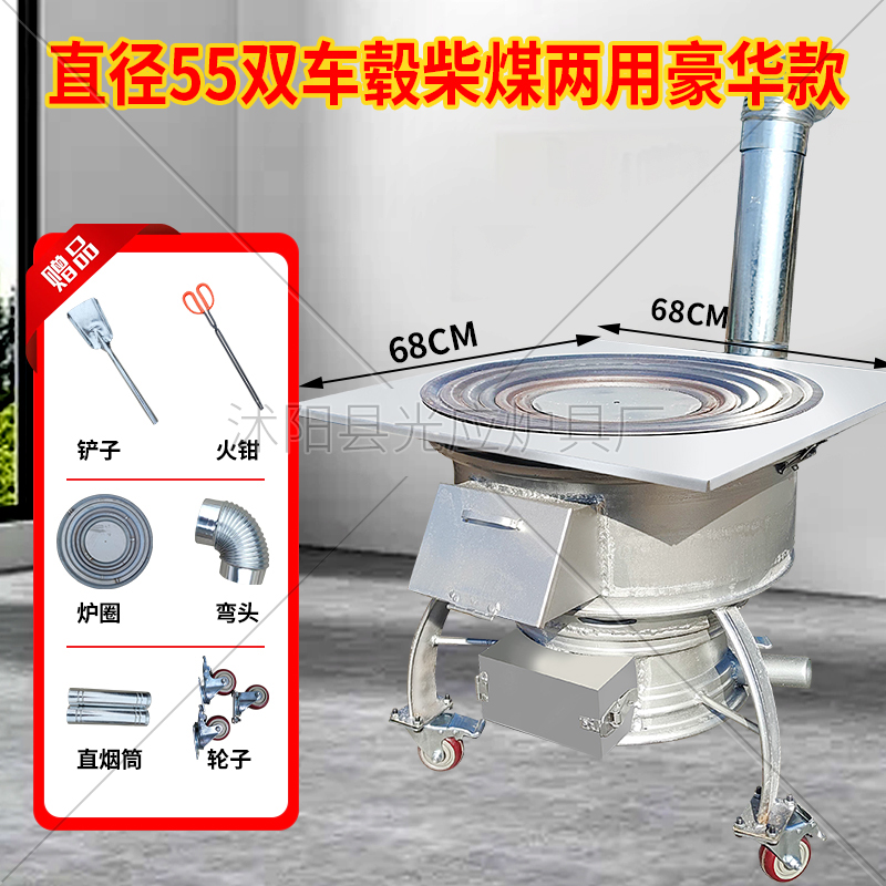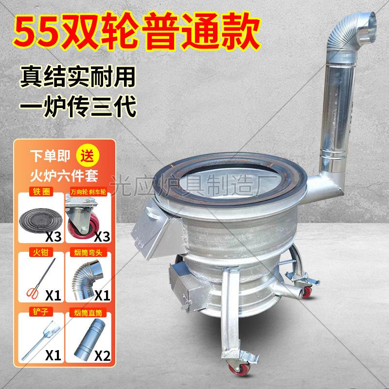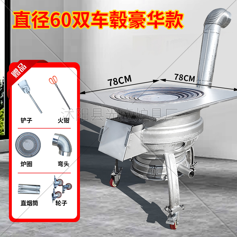 새로운 장작 스토브, 장작 및 석탄 이중 용도 야외 휴대용 모바일 장작 스토브, 자동차 휠 허브 수정 농촌 가정용 스토브스토어 가기