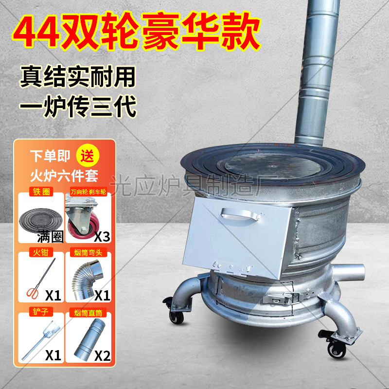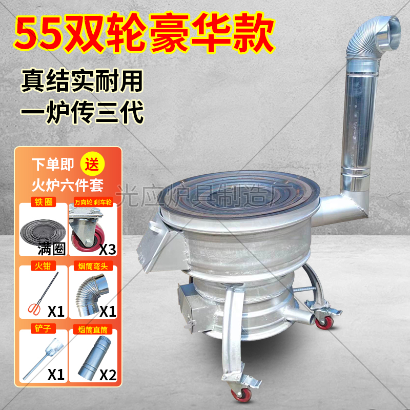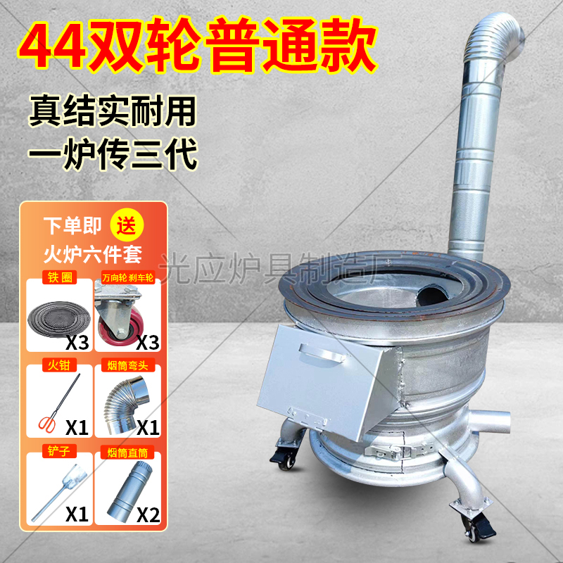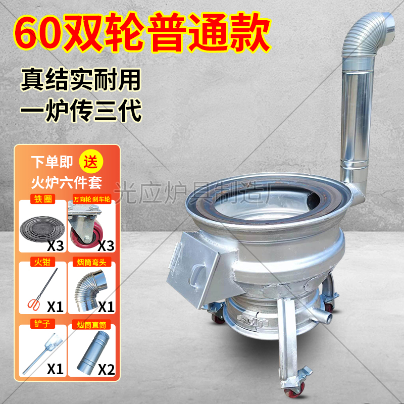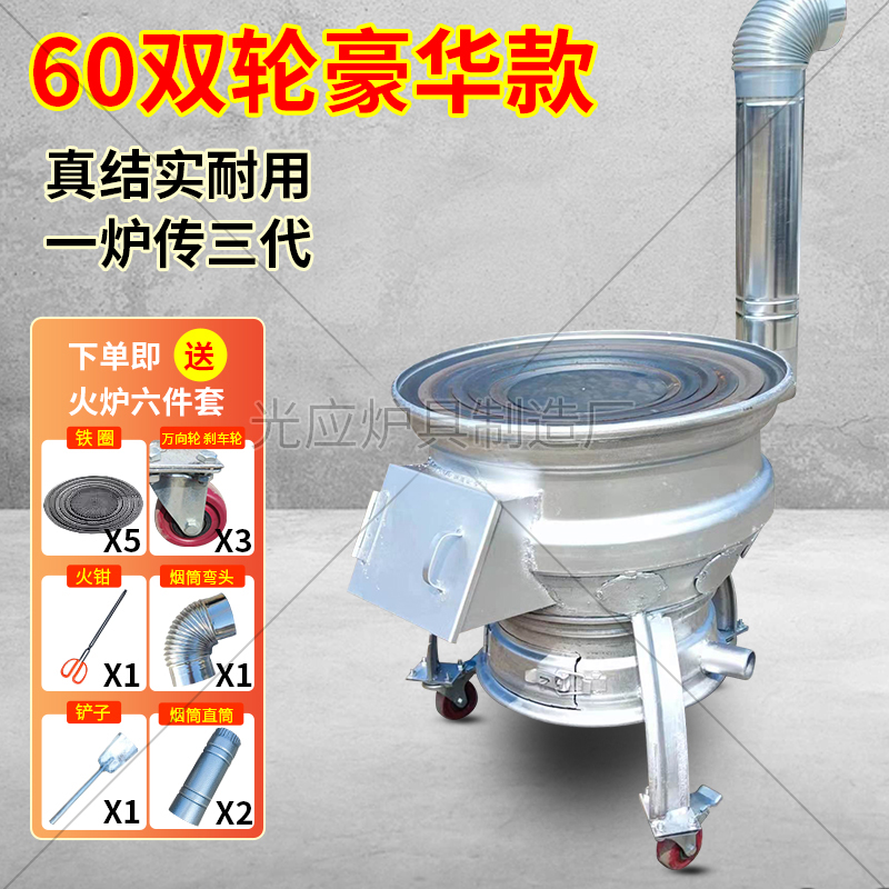 새로운 장작 스토브, 장작 및 석탄 이중 용도 야외 휴대용 모바일 장작 스토브, 자동차 휠 허브 수정 농촌 가정용 스토브