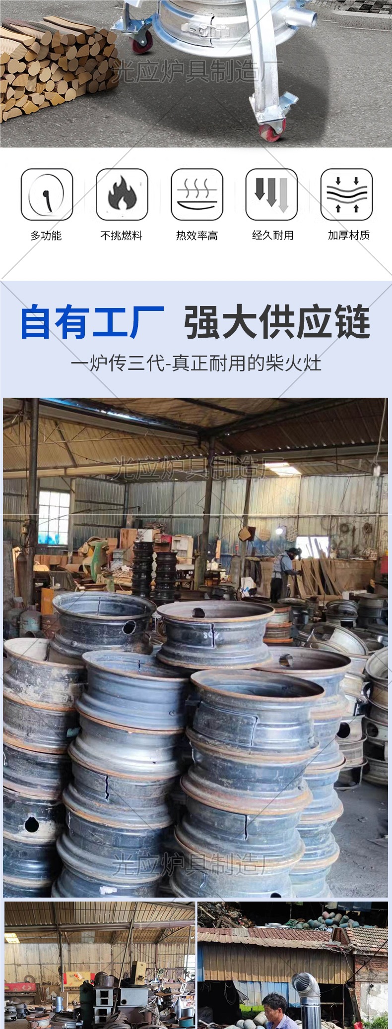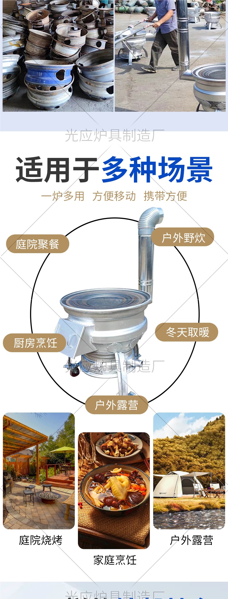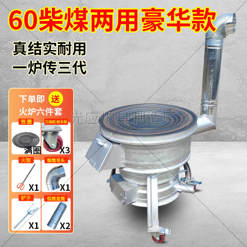 새로운 장작 스토브, 장작 및 석탄 이중 용도 야외 휴대용 모바일 장작 스토브, 자동차 휠 허브 수정 농촌 가정용 스토브