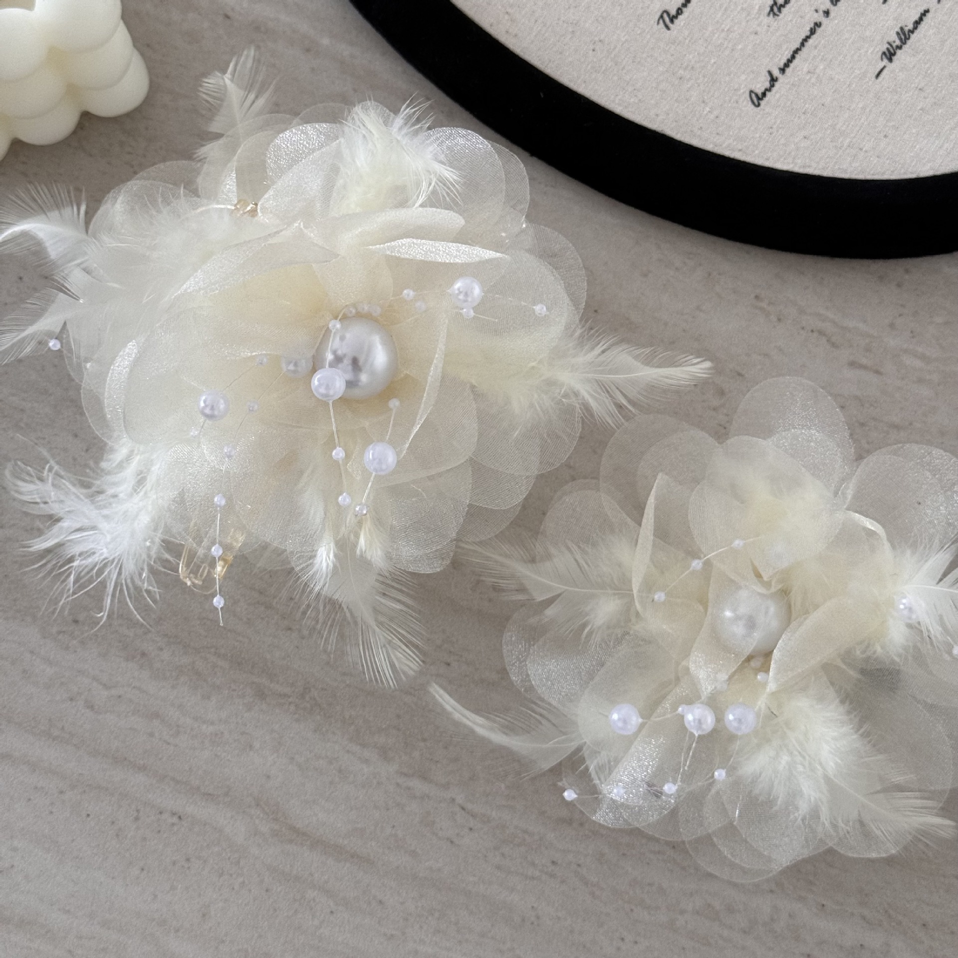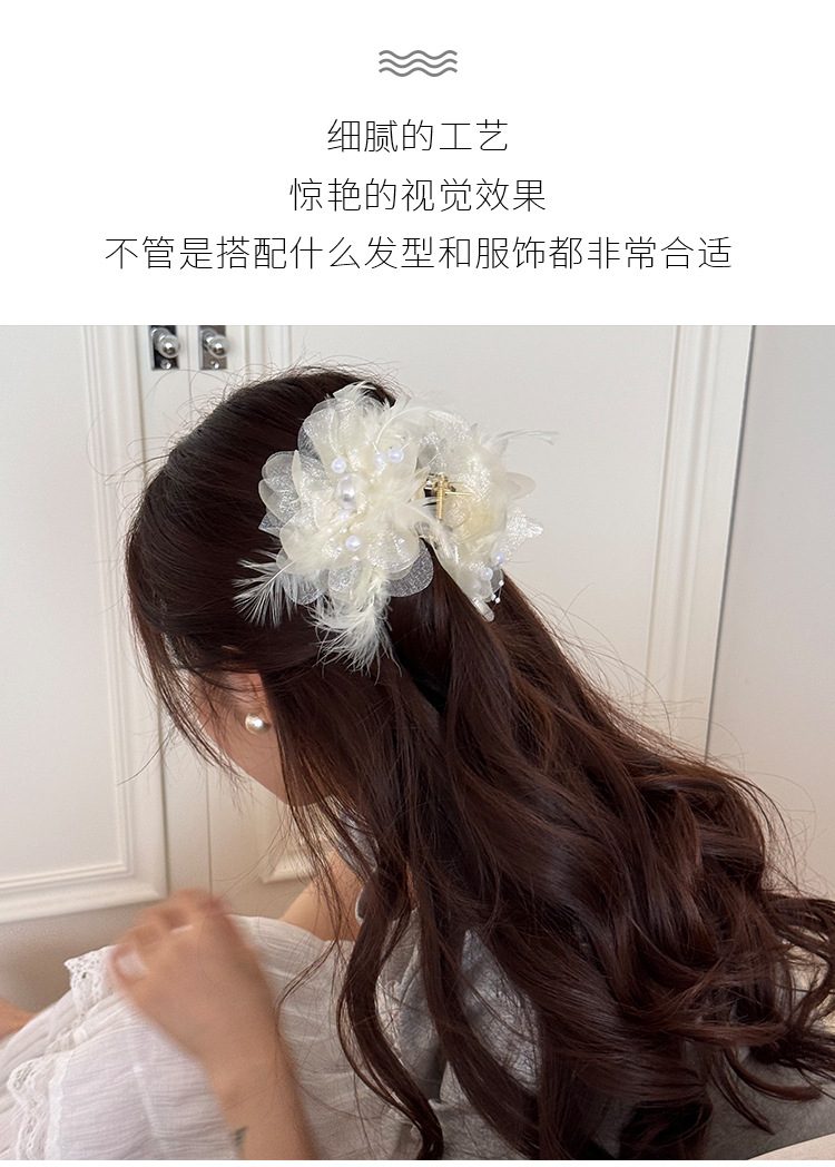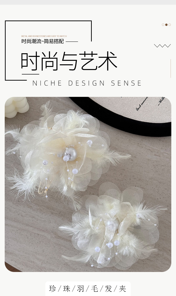 여성을위한 흰색 진주 깃털 꽃 머리핀 2025 새로운 고급 머리핀 뒷머리 기질 상어 클립 머리 장식스토어 가기