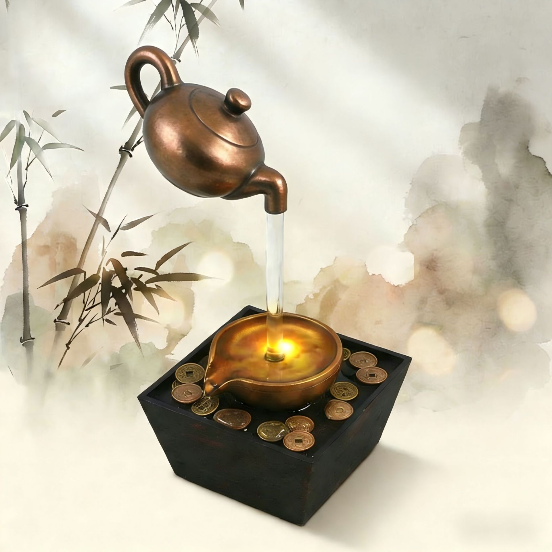 거실 홈 오피스 데스크탑 작은 분수 부를 끌어들이고 물 흐르는 장식품 풍경 장식 공예 선물스토어 가기