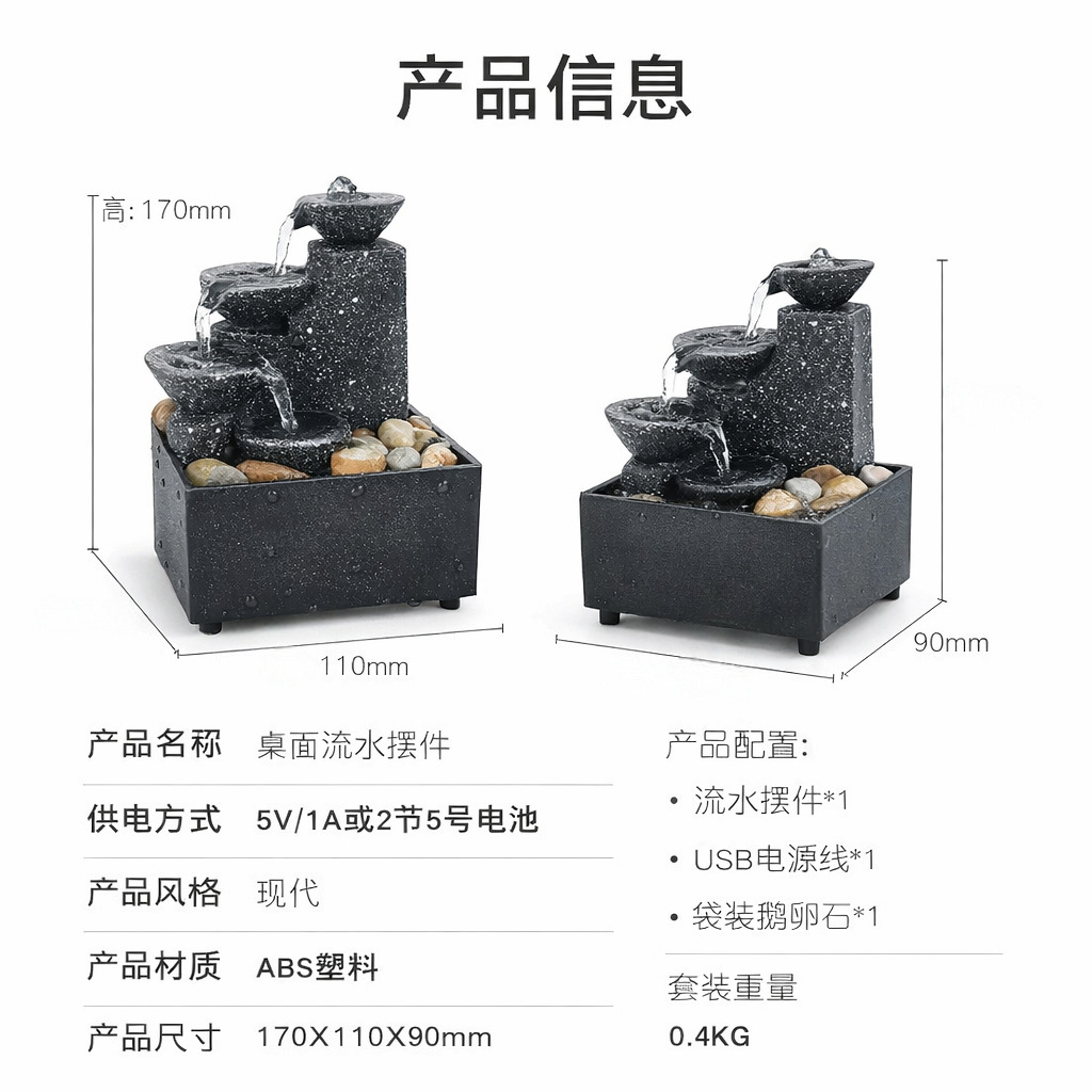 거실 홈 오피스 데스크탑 작은 분수 부를 끌어들이고 물 흐르는 장식품 풍경 장식 공예 선물