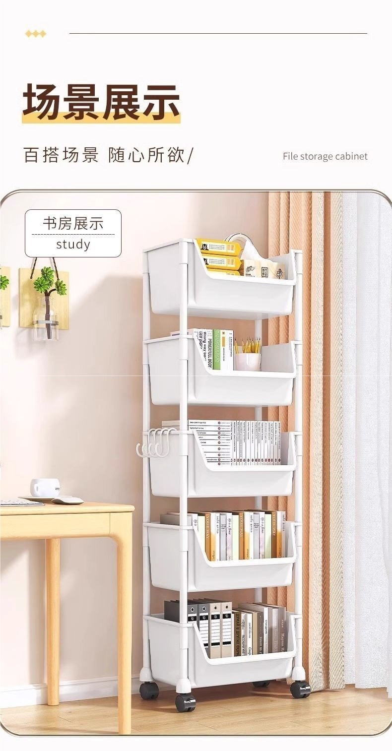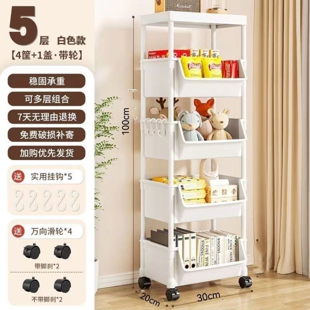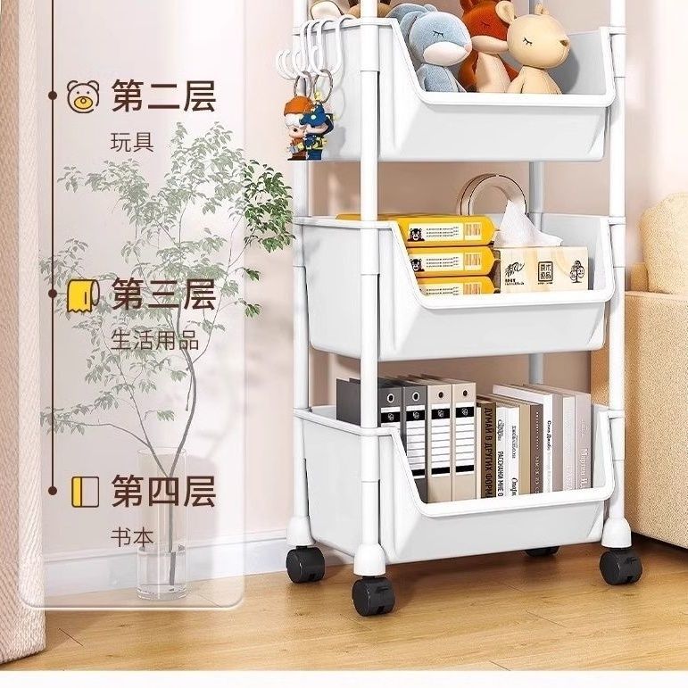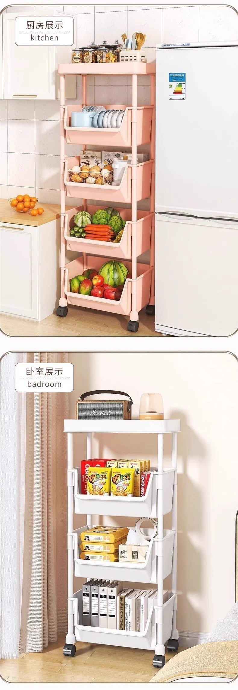 트롤리 보관 랙 가정용 스낵 바닥 스탠딩 다층 거실 보관 책장 모바일 주방 과일 및 야채 바구니 선반