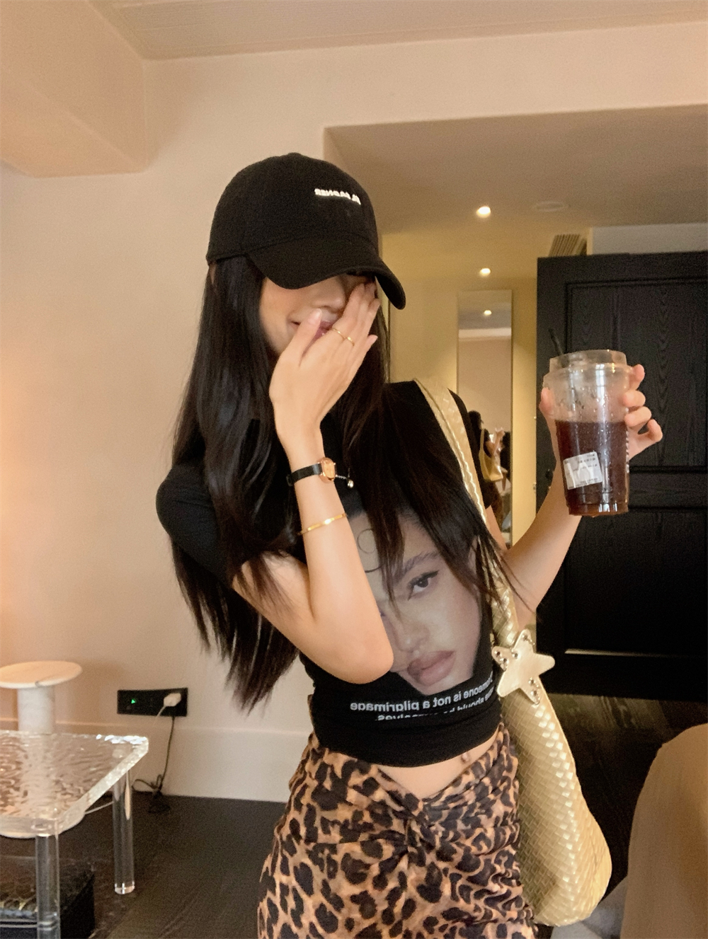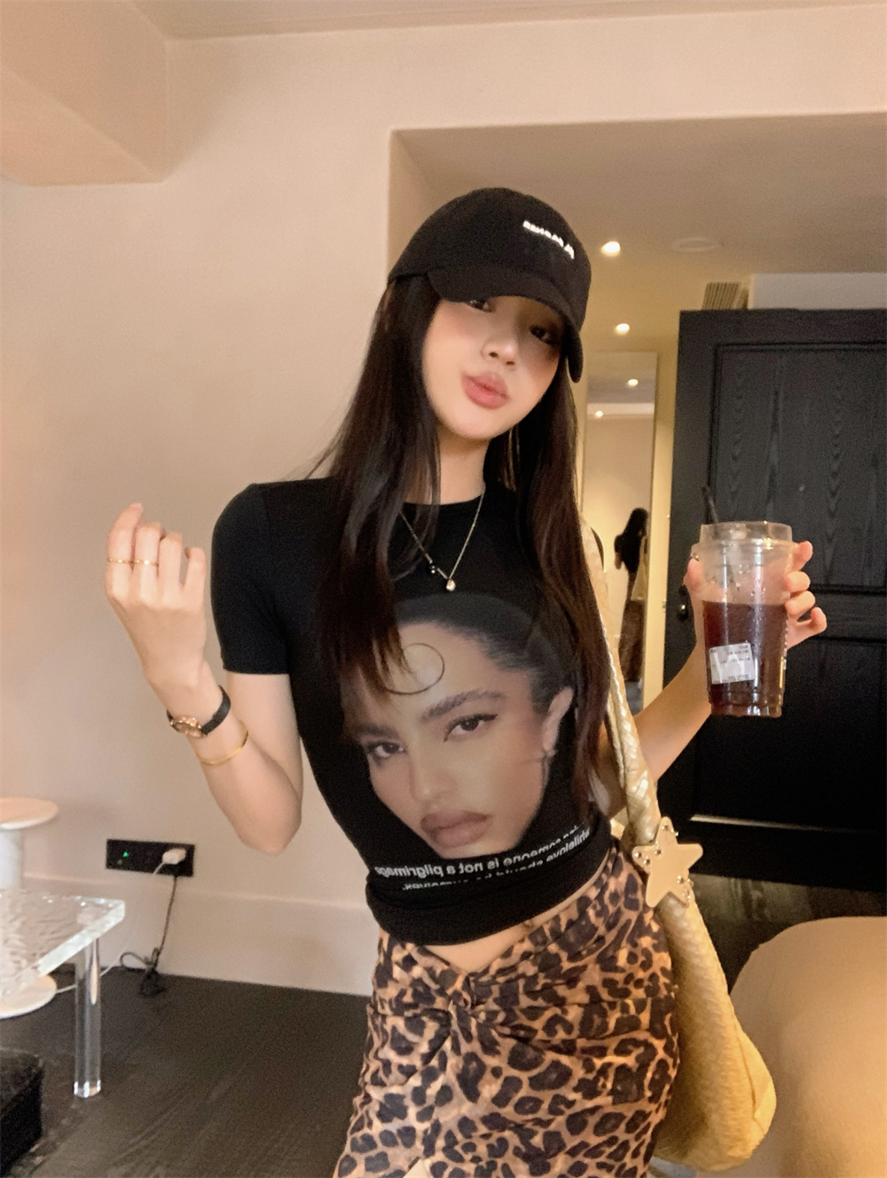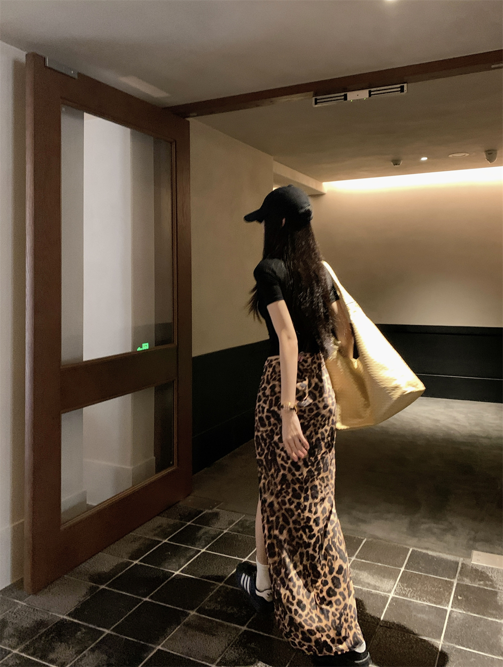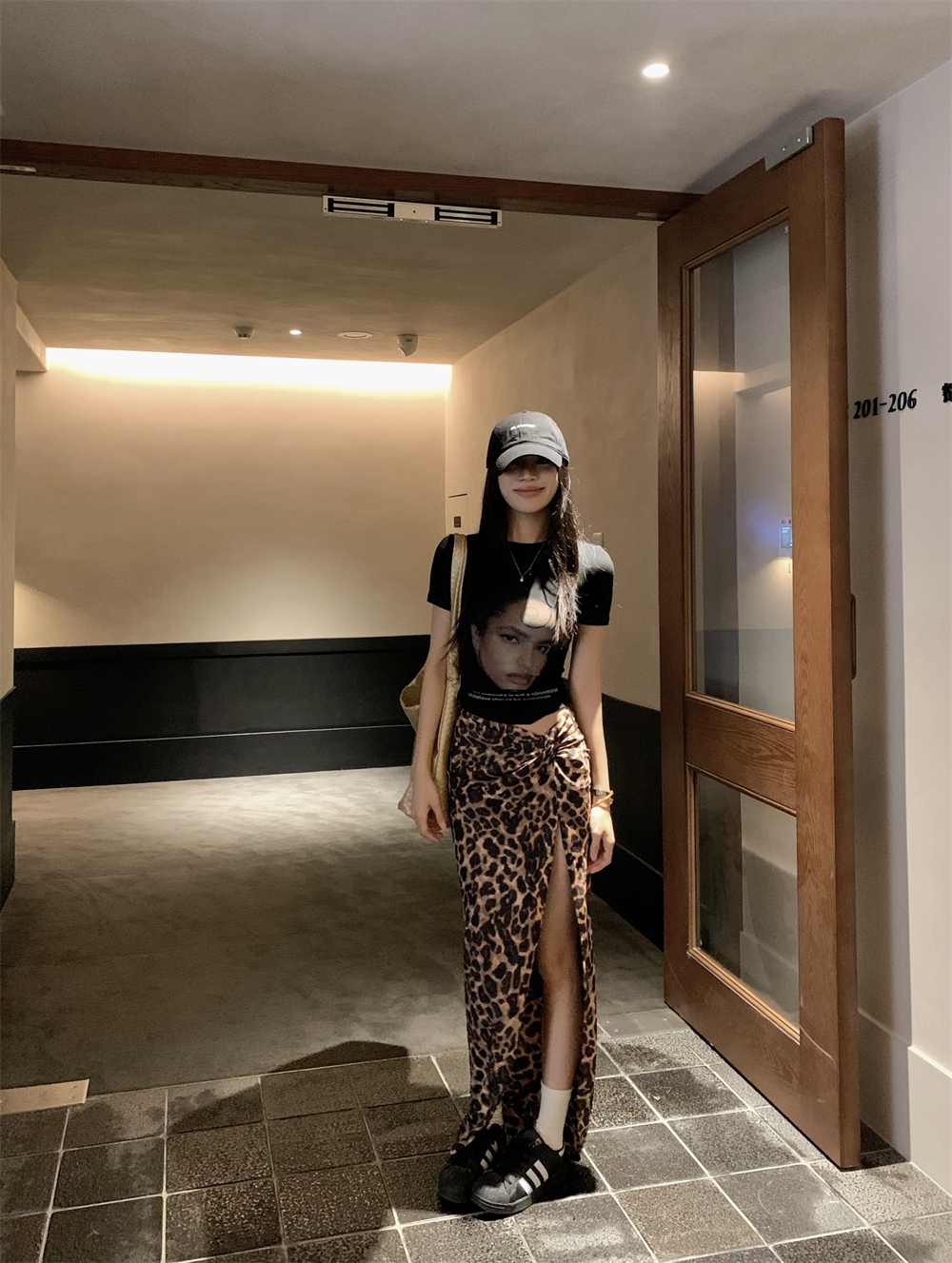 아메리칸 핫 걸 세트 프린트 반소매 티셔츠 탑 여성 여름 불규칙한 레오파드 프린트 스커트 투피스 세트