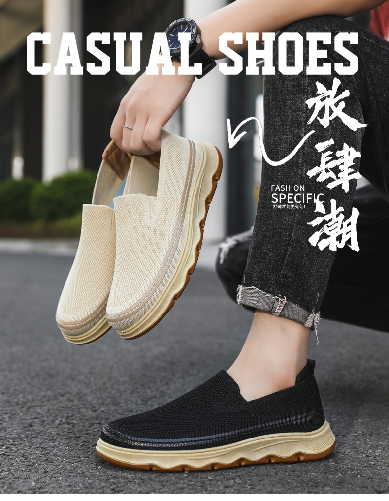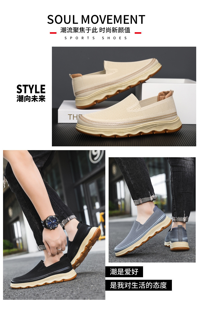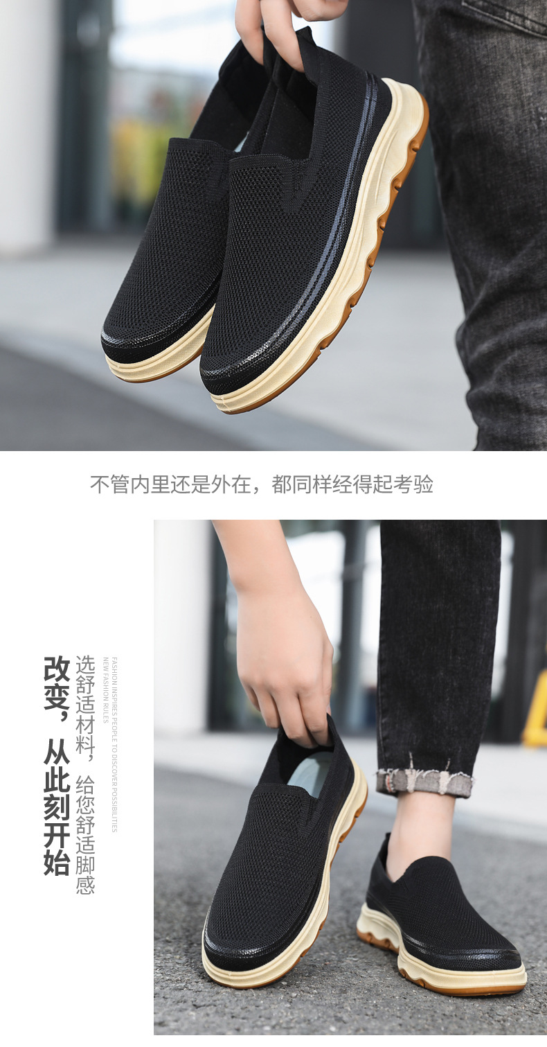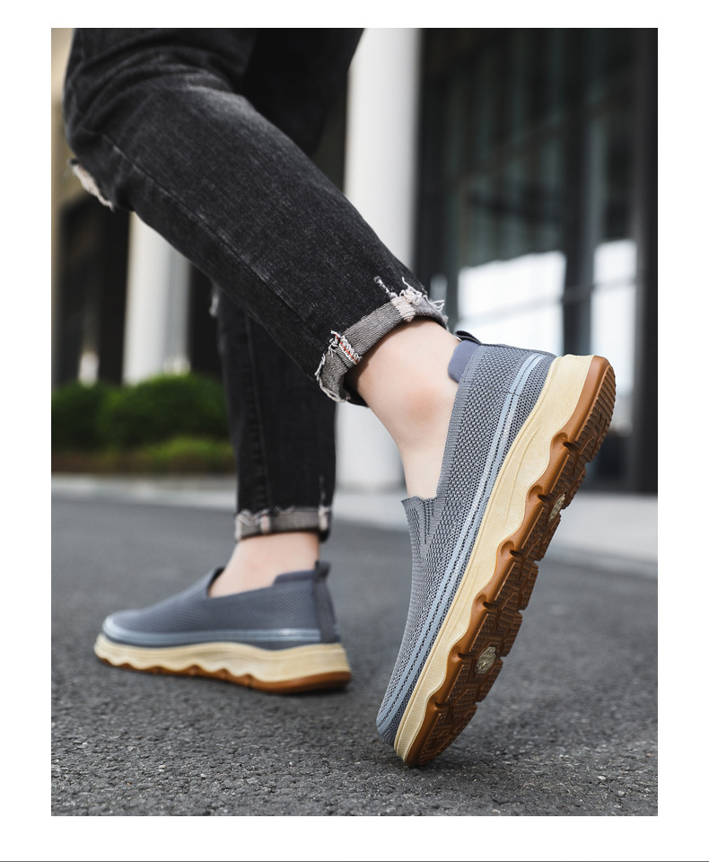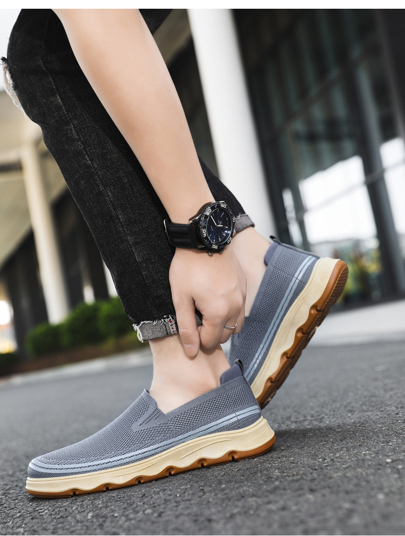 크로스보더 플라이 니트 대형 남성 신발 새로운 슬립온 슬립온 신발 통기성 경량 두꺼운 밑창 얇은 메쉬 신발 메쉬 유행 신발스토어 가기