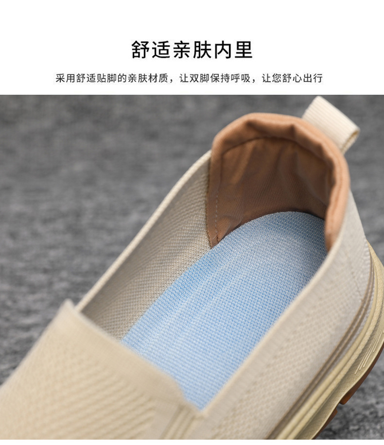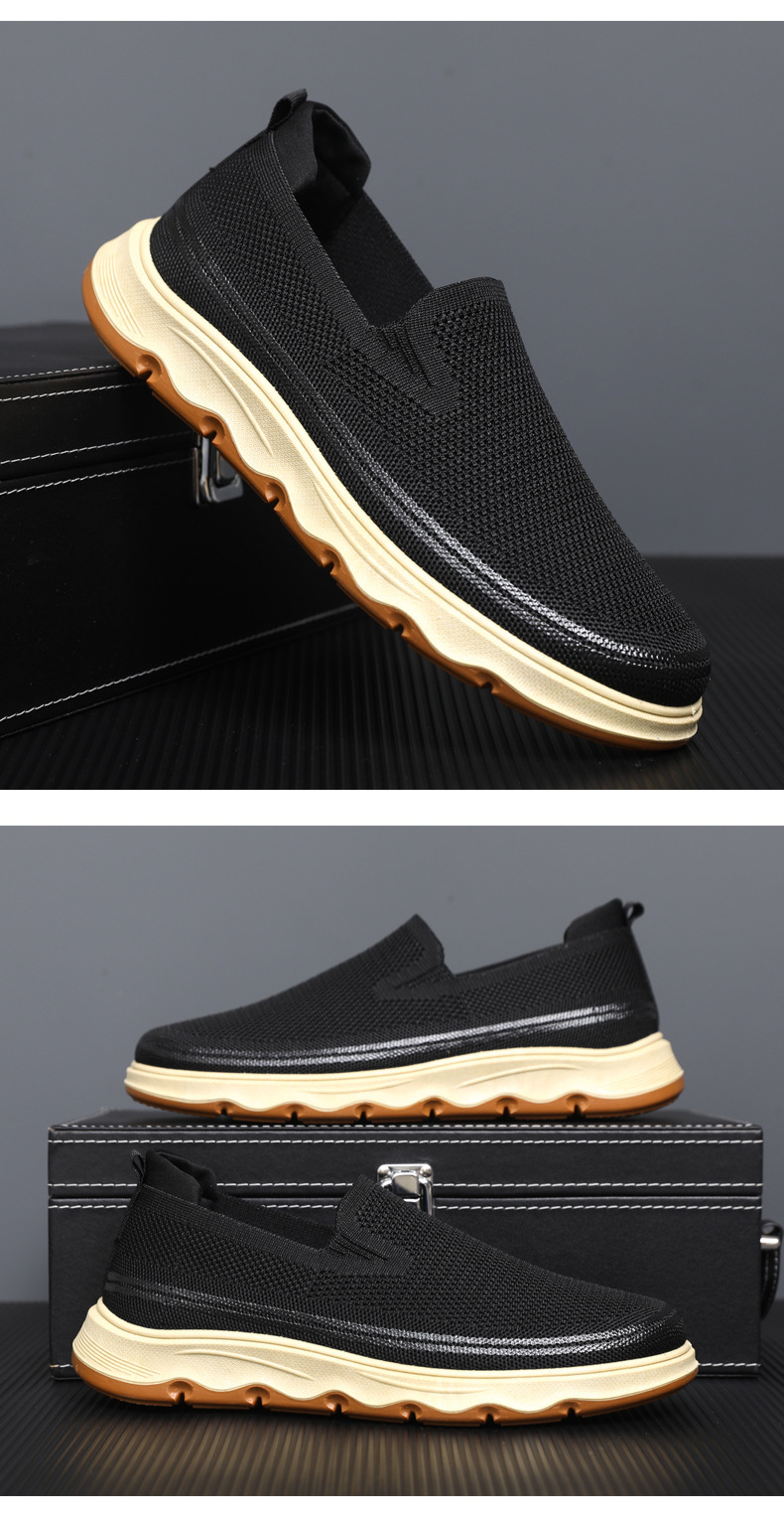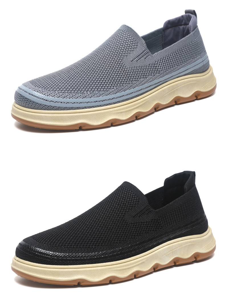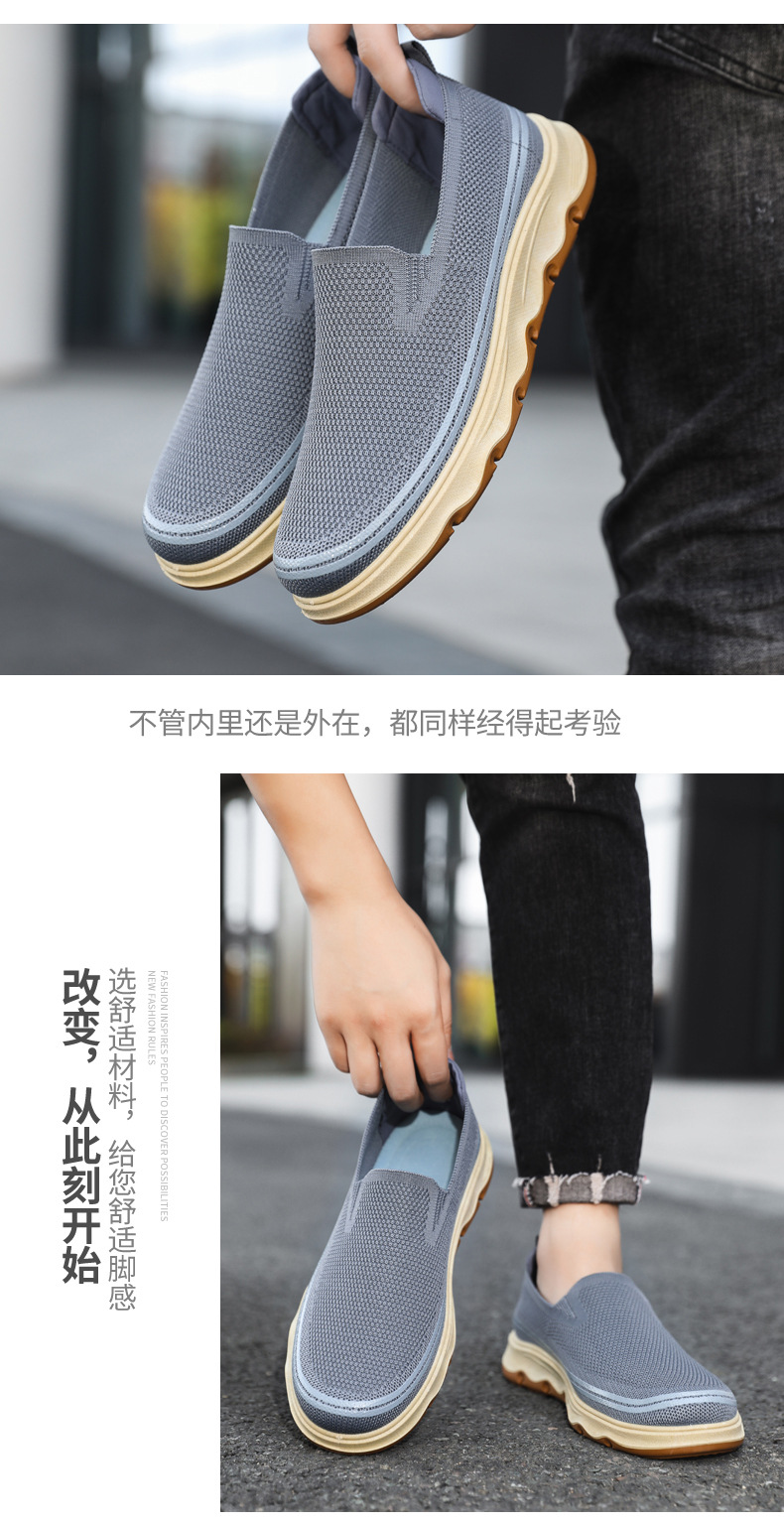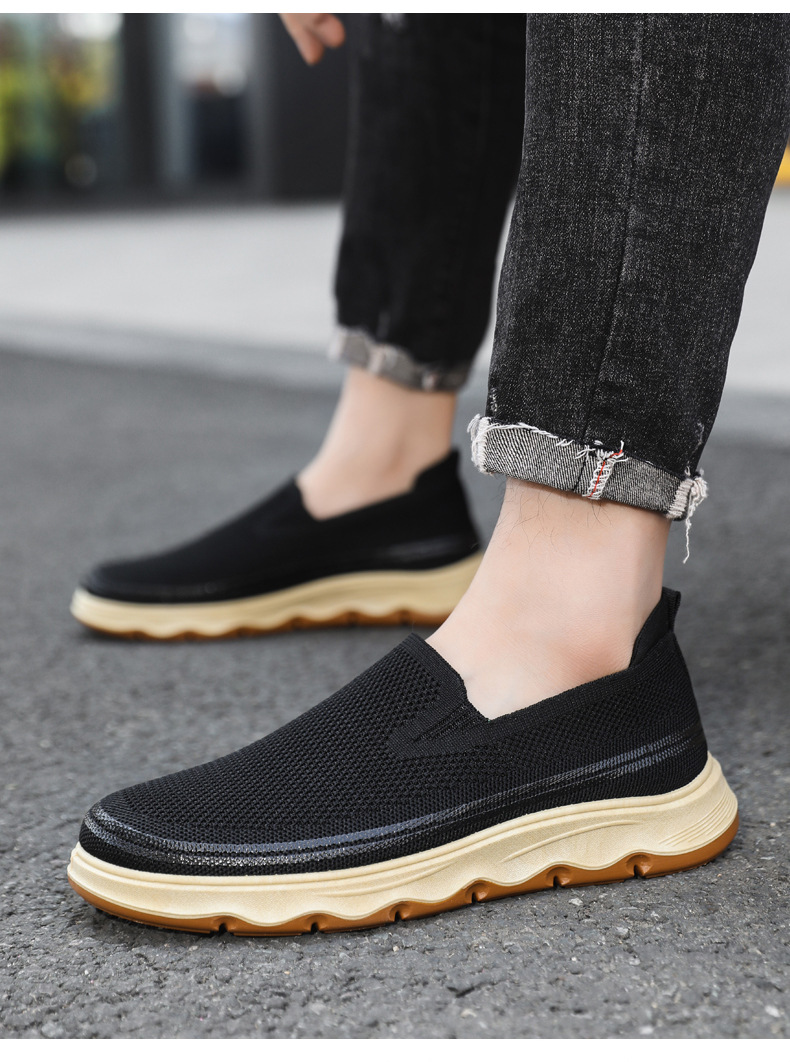 크로스보더 플라이 니트 대형 남성 신발 새로운 슬립온 슬립온 신발 통기성 경량 두꺼운 밑창 얇은 메쉬 신발 메쉬 유행 신발스토어 가기