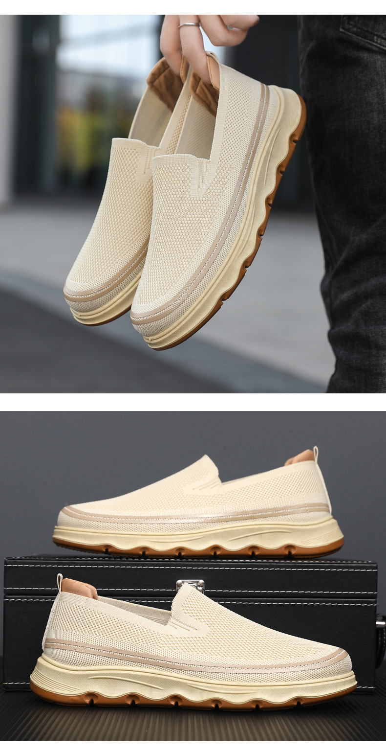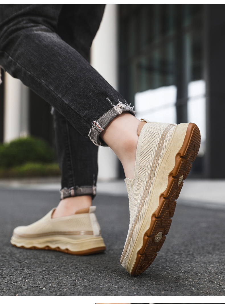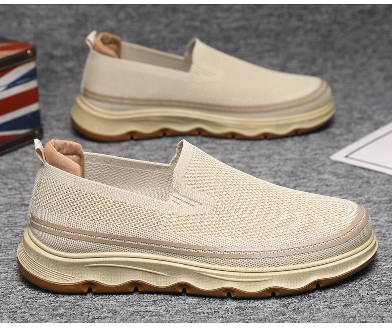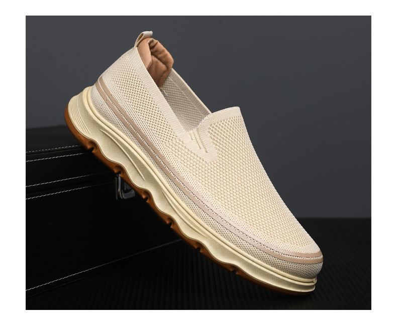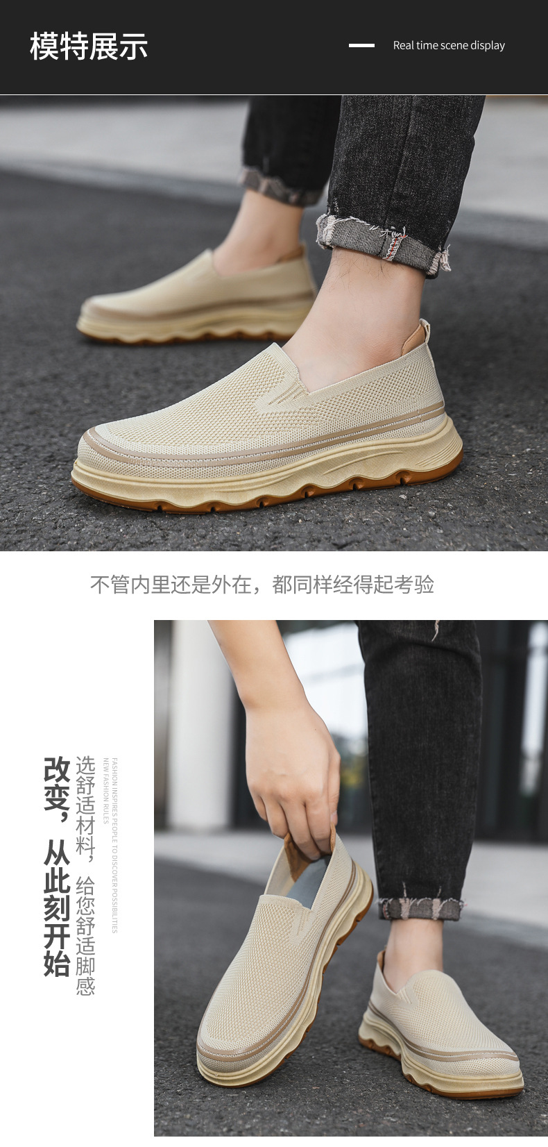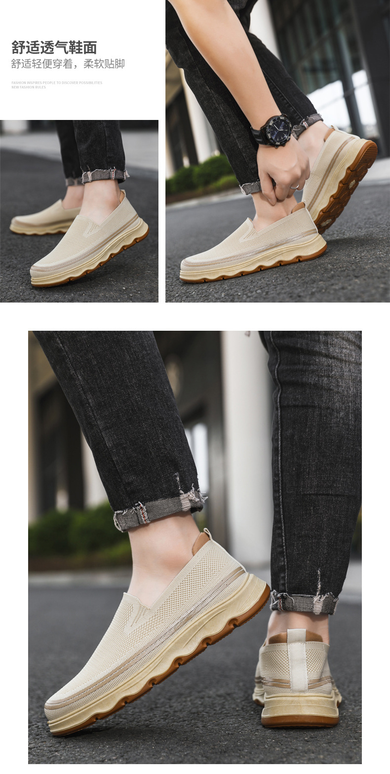 크로스보더 플라이 니트 대형 남성 신발 새로운 슬립온 슬립온 신발 통기성 경량 두꺼운 밑창 얇은 메쉬 신발 메쉬 유행 신발