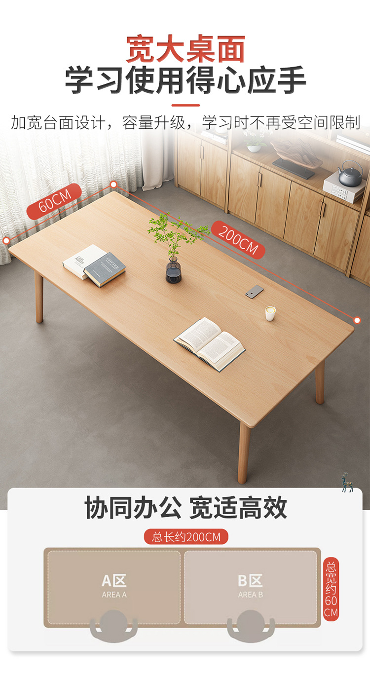 단단한 나무 컴퓨터 책상 학생 집 책상 간단한 데스크탑 책상 긴 창문 테이블 너도밤 나무 jω