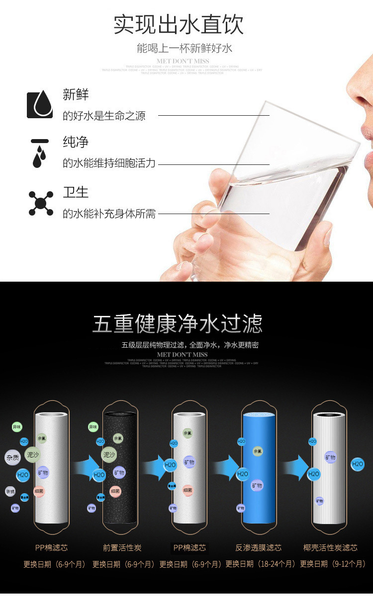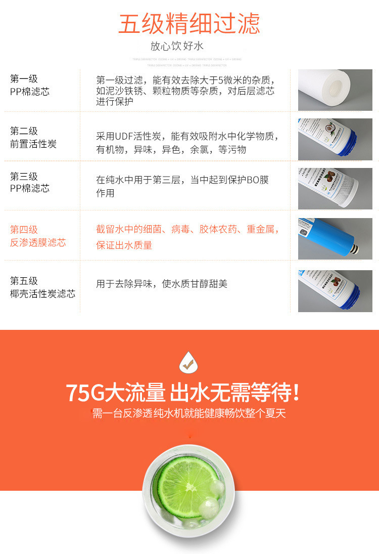 5단계 가정용 정수기 RO 역삼투 순수 정수기 직접 마시는 주방 필터 수돗물