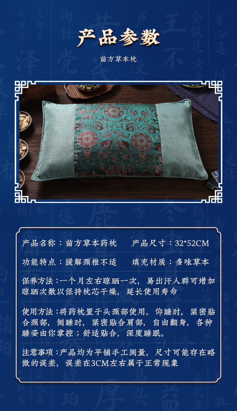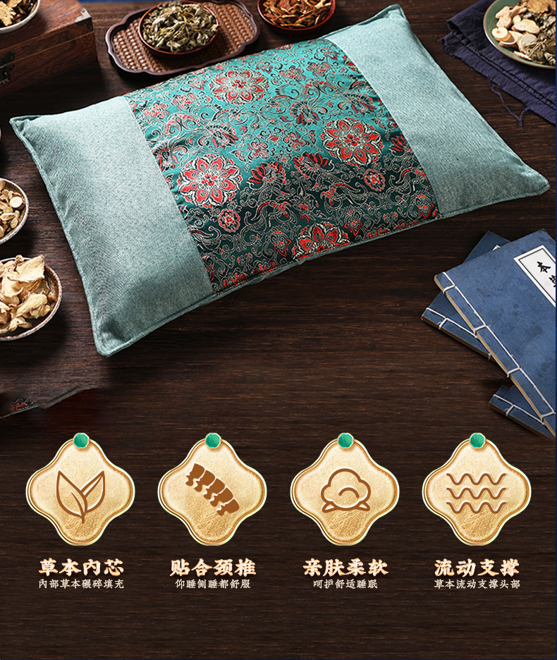 한방 베개 경추 베개 브로케이드 원단 꽃과 풀 베개 맞춤 제작 메밀 베개 꽃과 풀 수면 베개 한방 베개