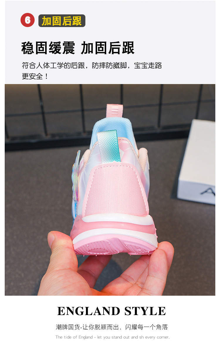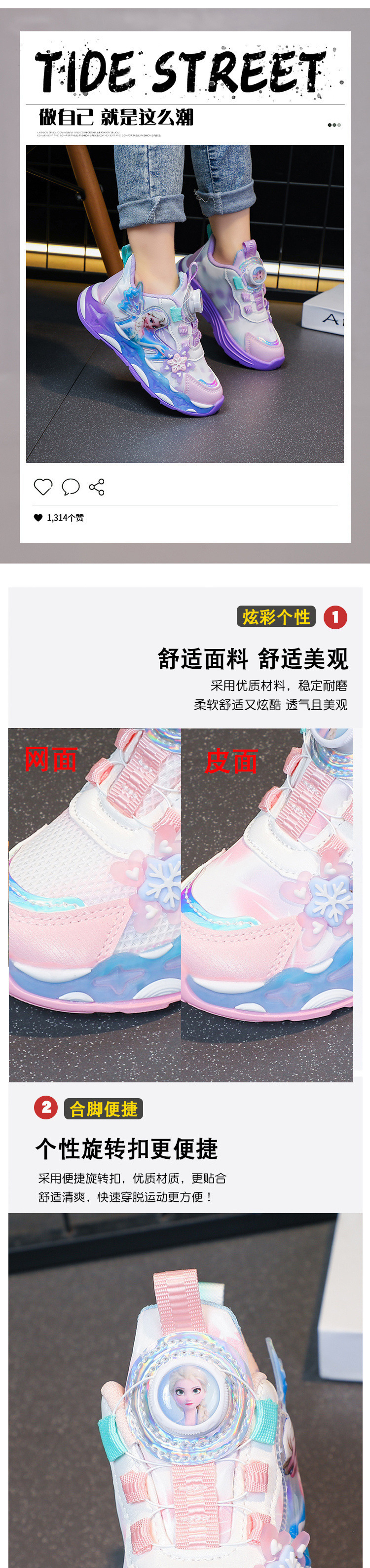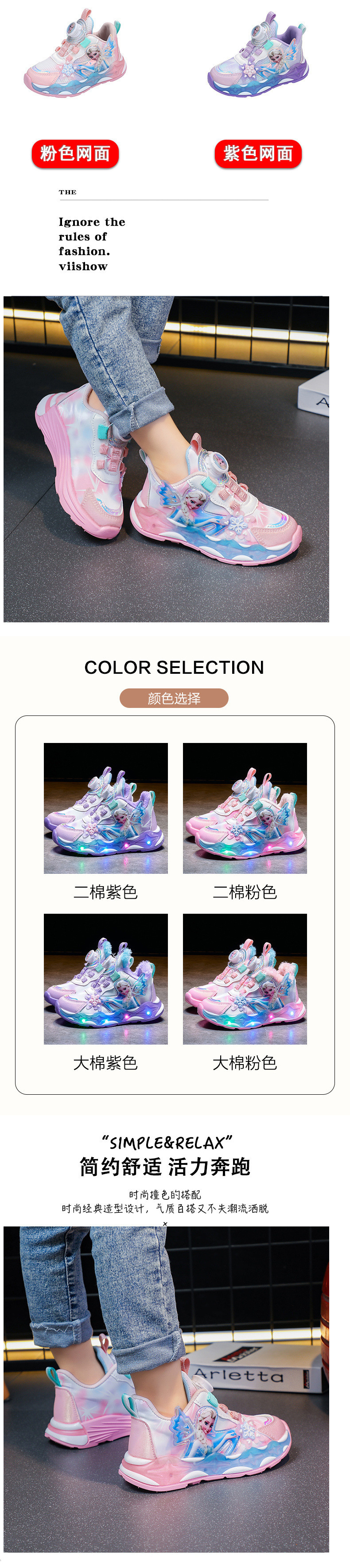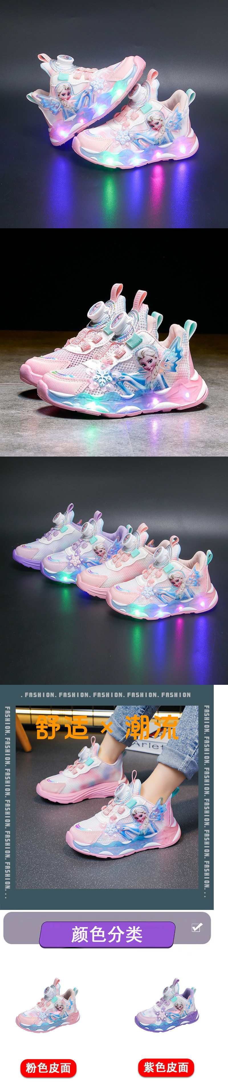 빛이있는 소녀 신발 2025 봄과 여름 더블 메쉬 통기성 엘사 공주 신발 가죽 어린이 스포츠 신발 빛나는 달리기스토어 가기