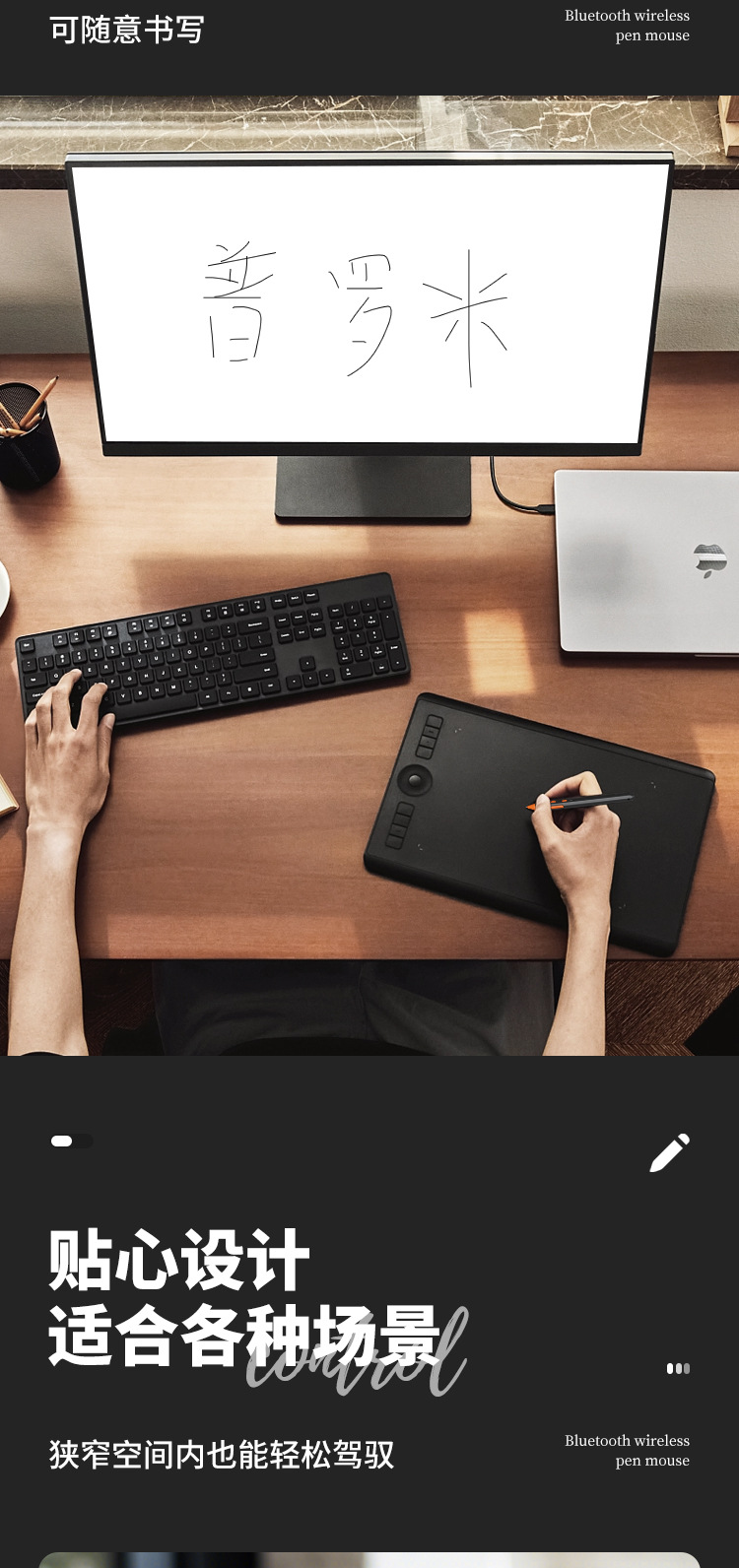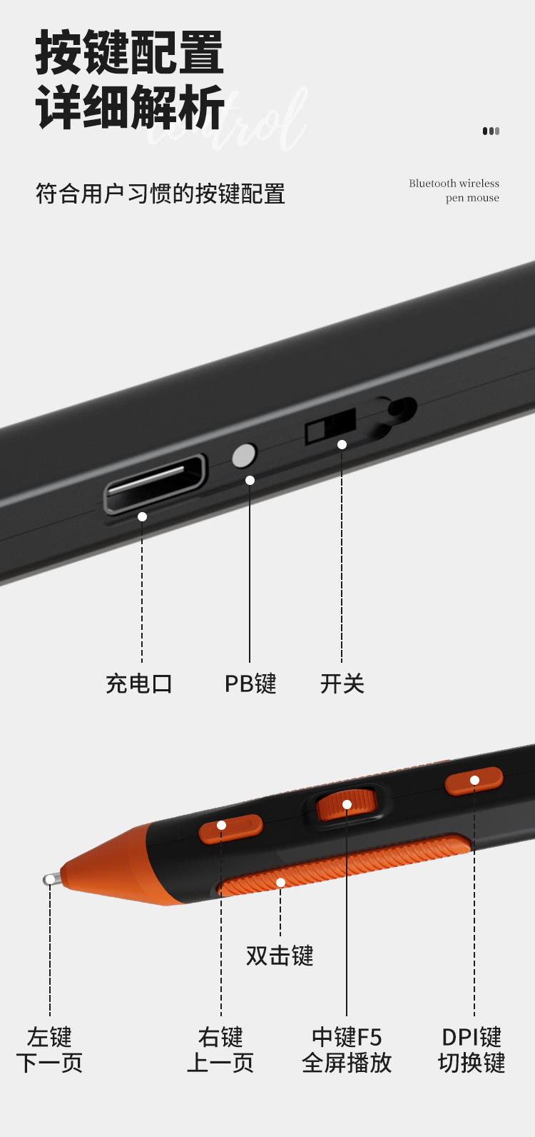 Promi Type-c Bluetooth 무선 필기 펜 마우스 투인원 PPT 페이지 넘기기 펜 데스크탑 노트북