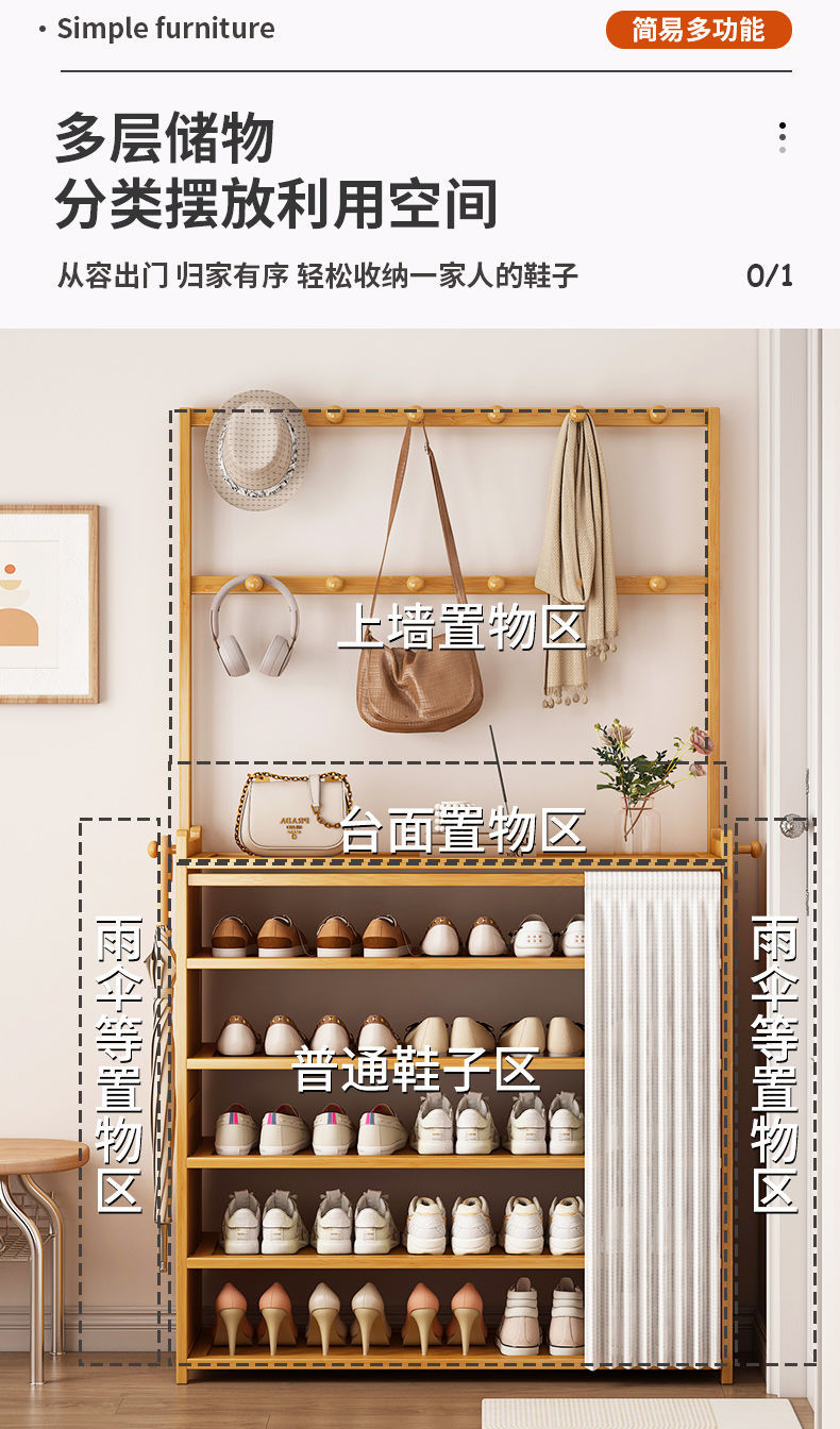 신발장 다층 집 입구 방진 간단한 대용량 수납 선반 벽 기숙사 신발장