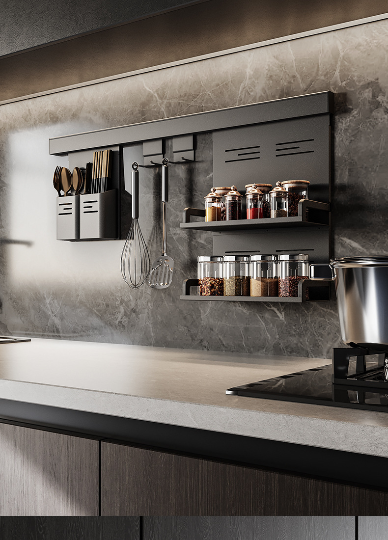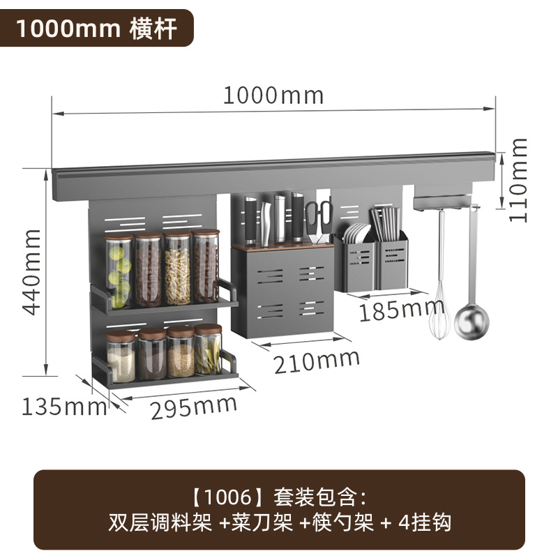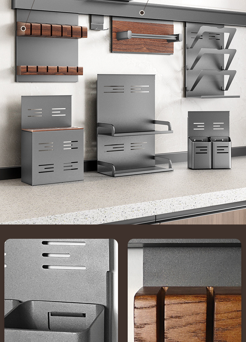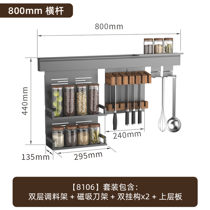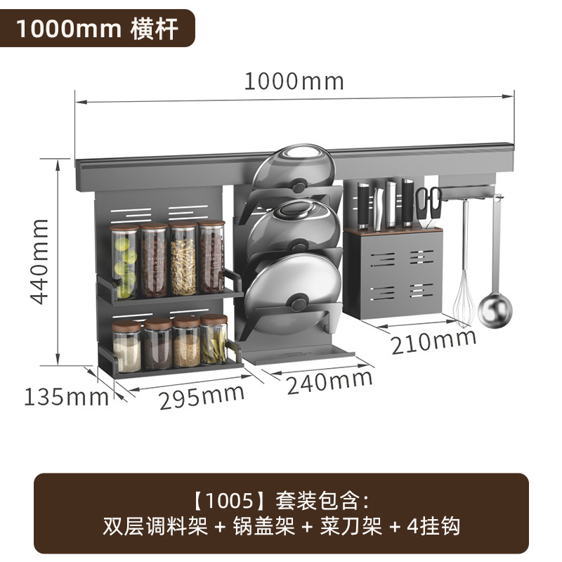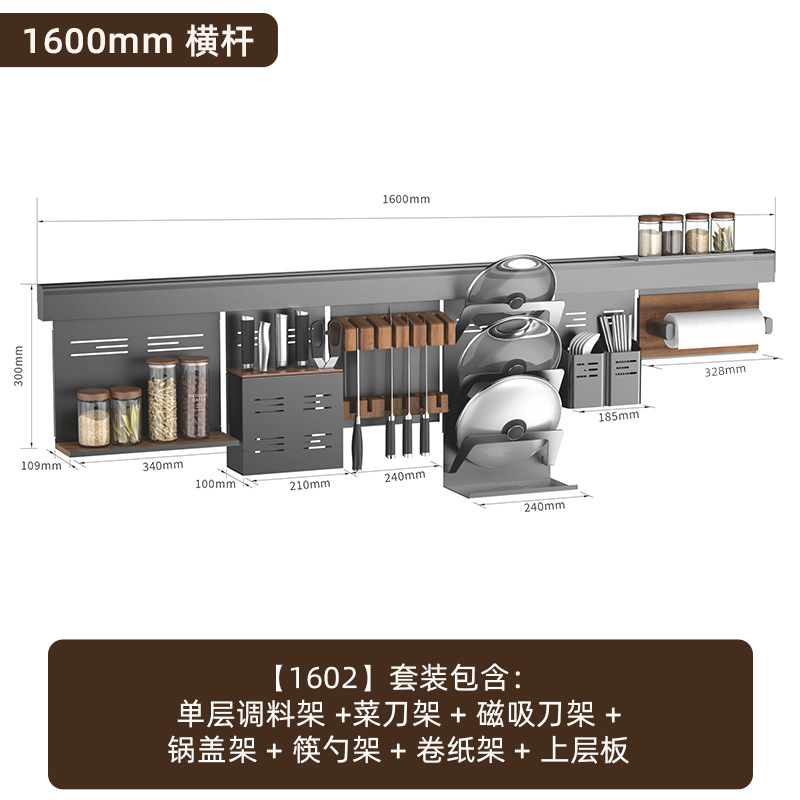 • 【1602】단층 양념통 + 식칼 꽂이 + 자석 칼 꽂이 + 냄비 뚜껑 꽂이 + 젓가락과 숟가락 꽂이 + 종이 롤 꽂이 + 상판