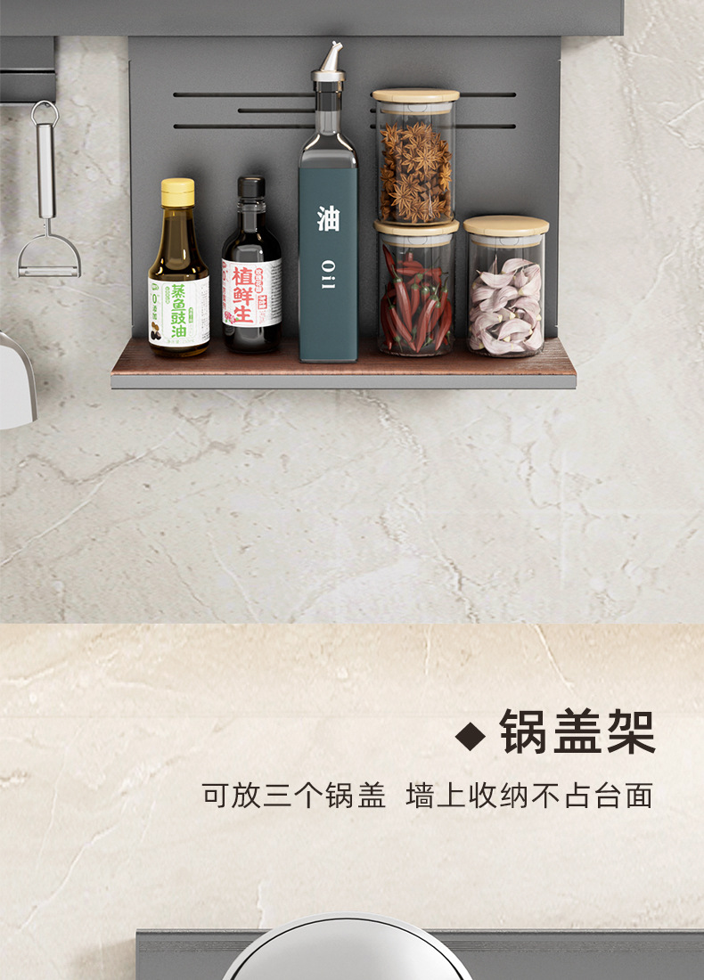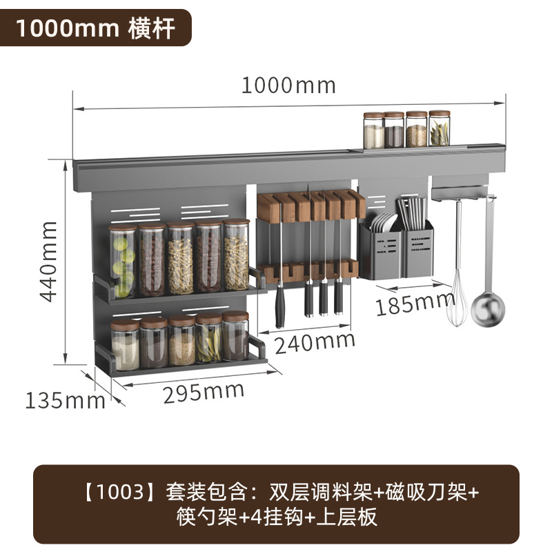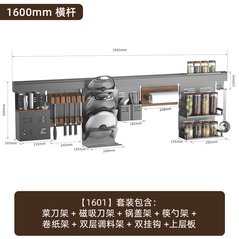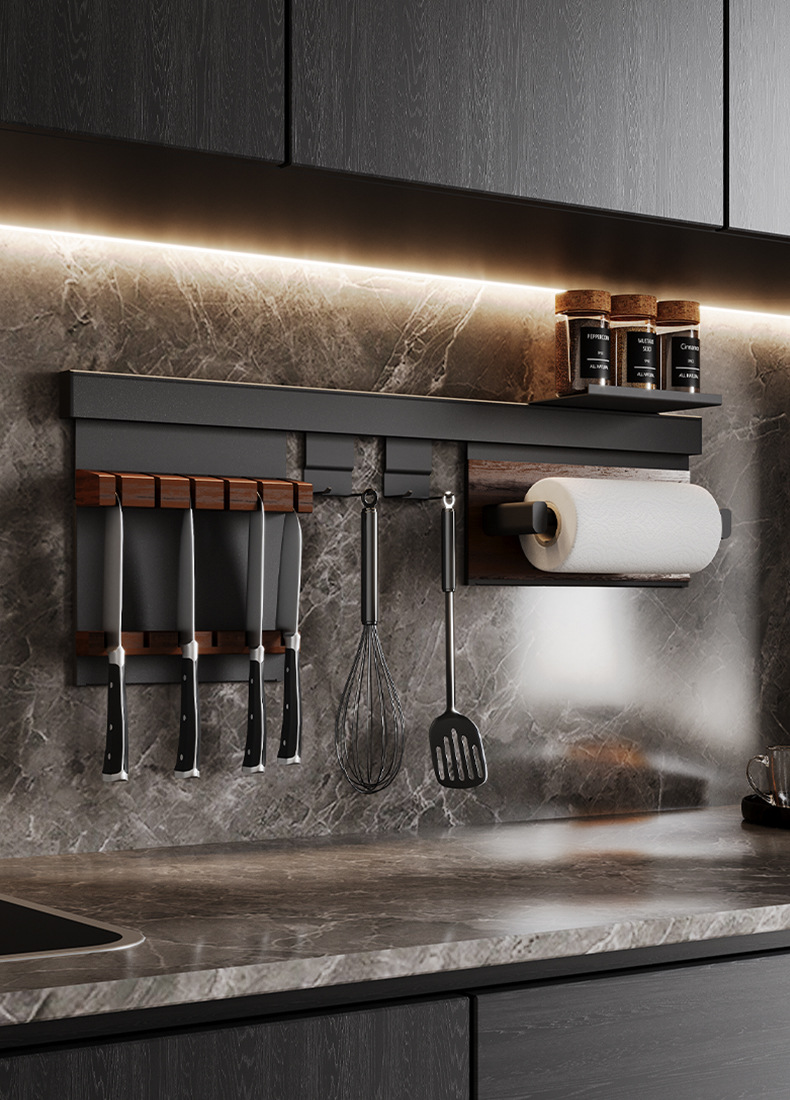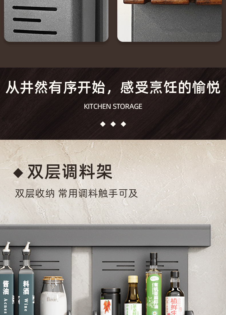 • 【1602】단층 양념통 + 식칼 꽂이 + 자석 칼 꽂이 + 냄비 뚜껑 꽂이 + 젓가락과 숟가락 꽂이 + 종이 롤 꽂이 + 상판