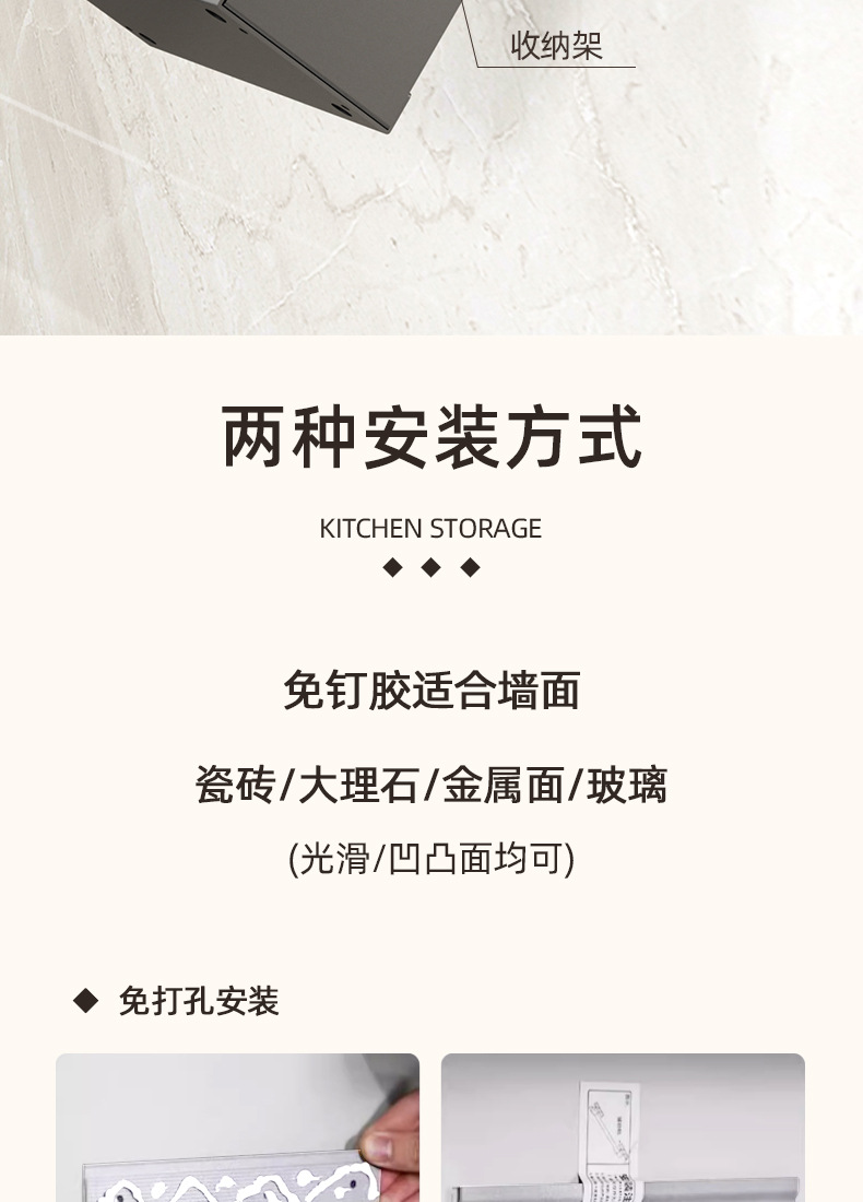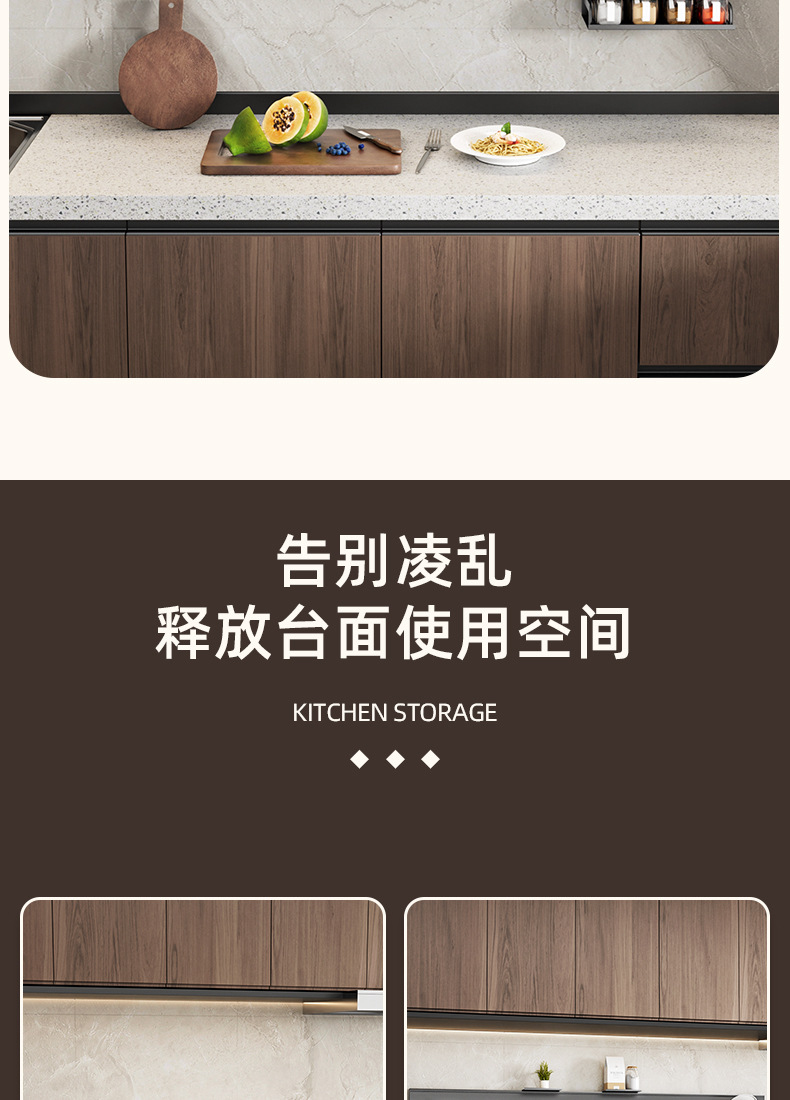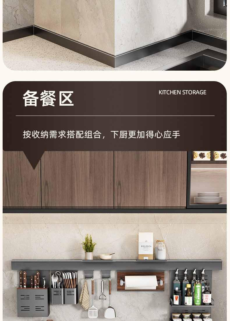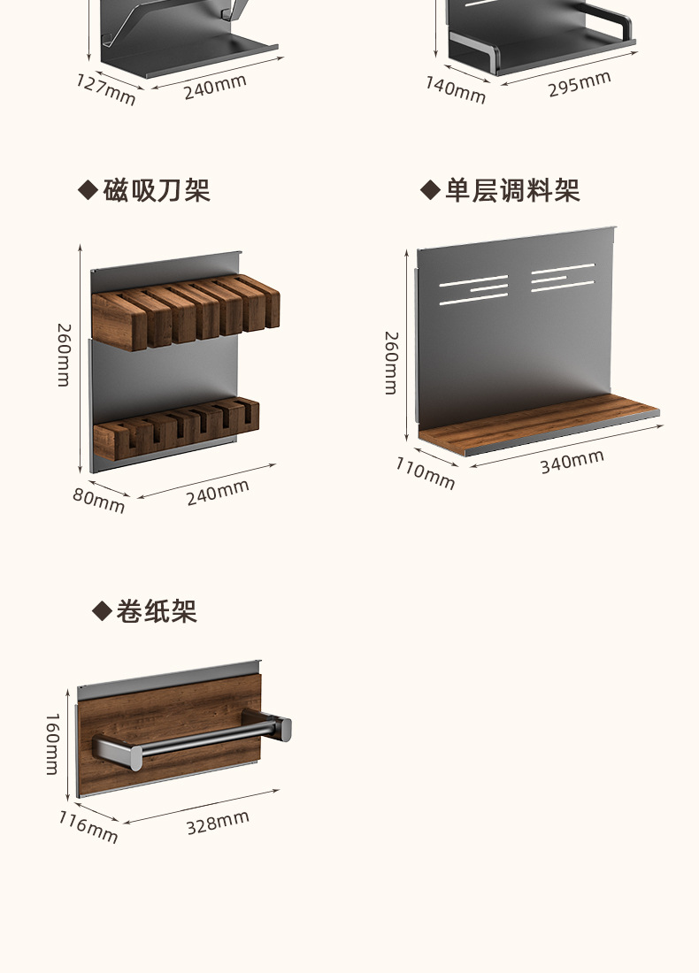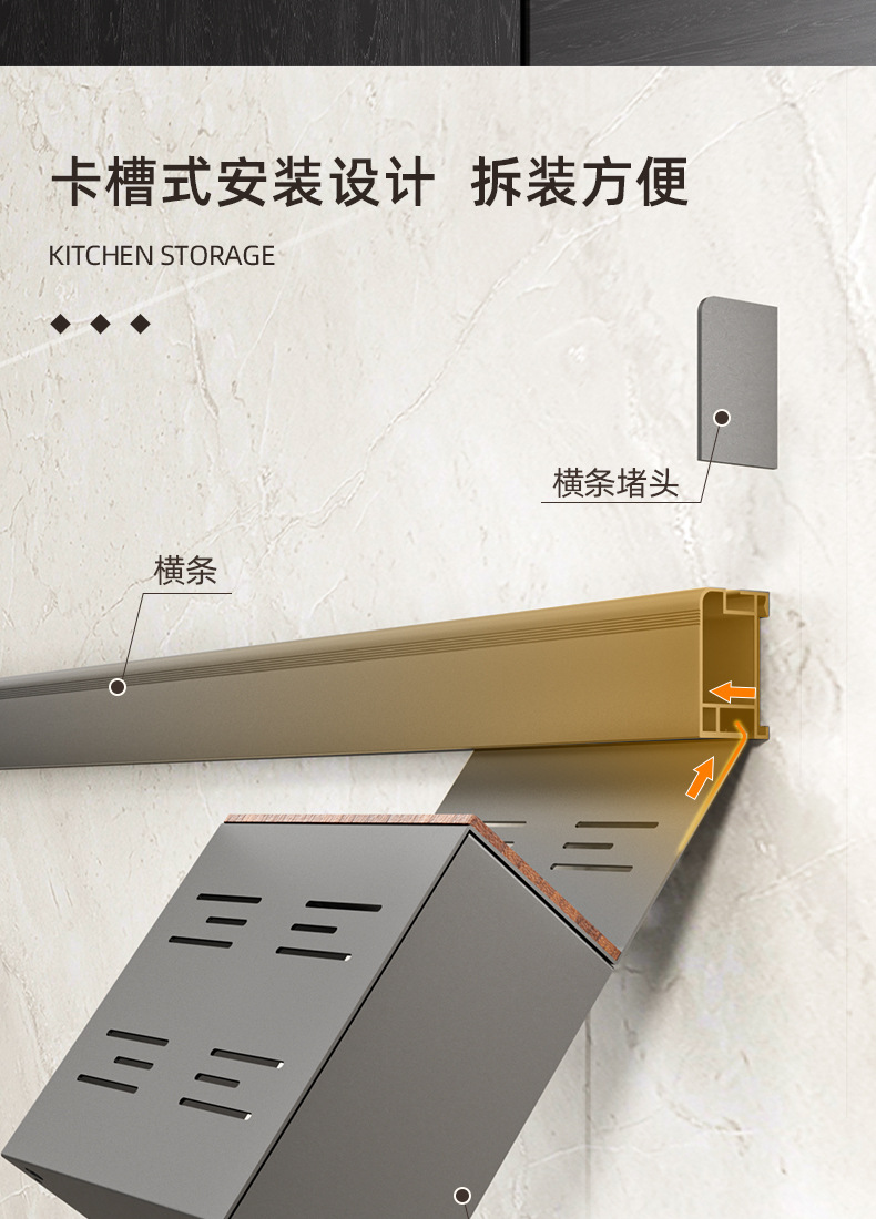 • 【1602】단층 양념통 + 식칼 꽂이 + 자석 칼 꽂이 + 냄비 뚜껑 꽂이 + 젓가락과 숟가락 꽂이 + 종이 롤 꽂이 + 상판