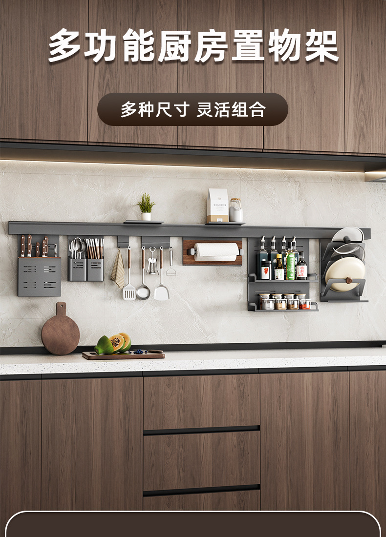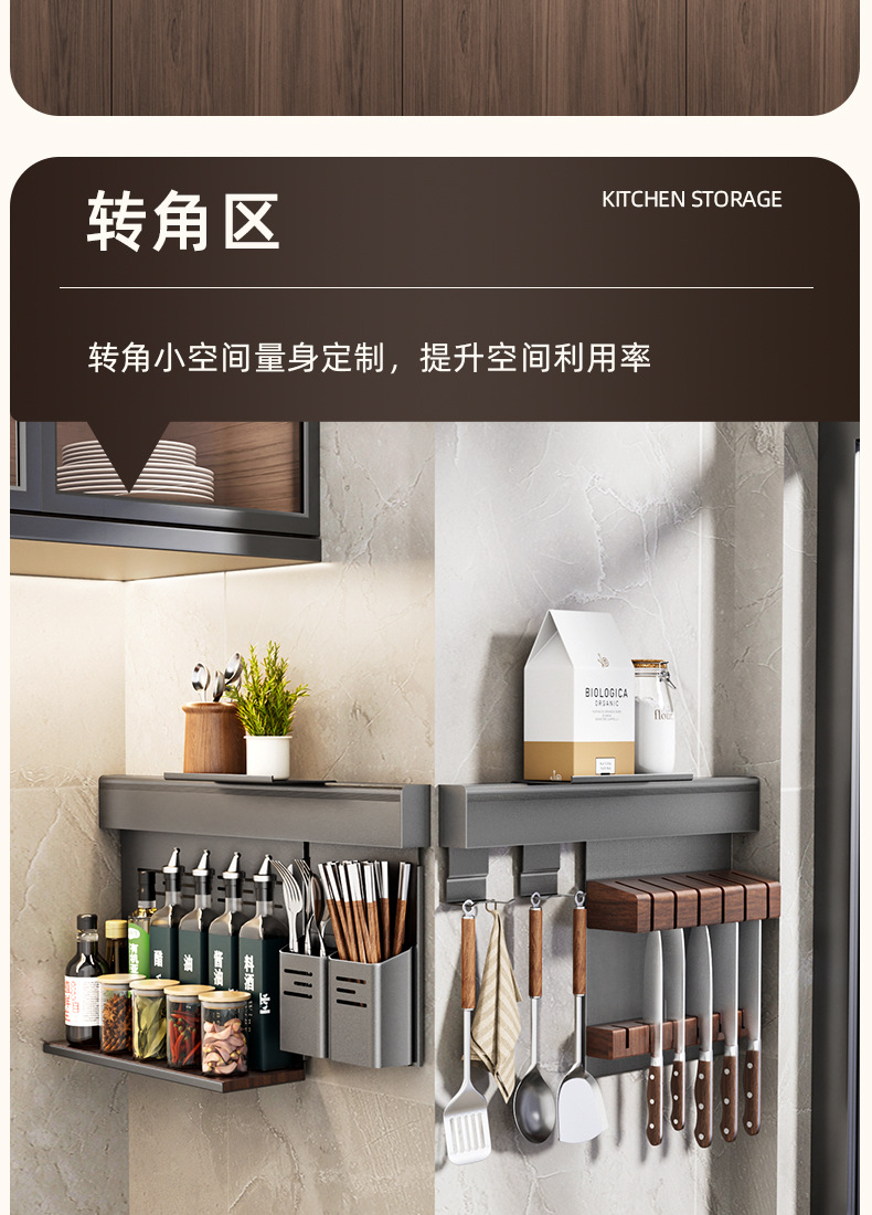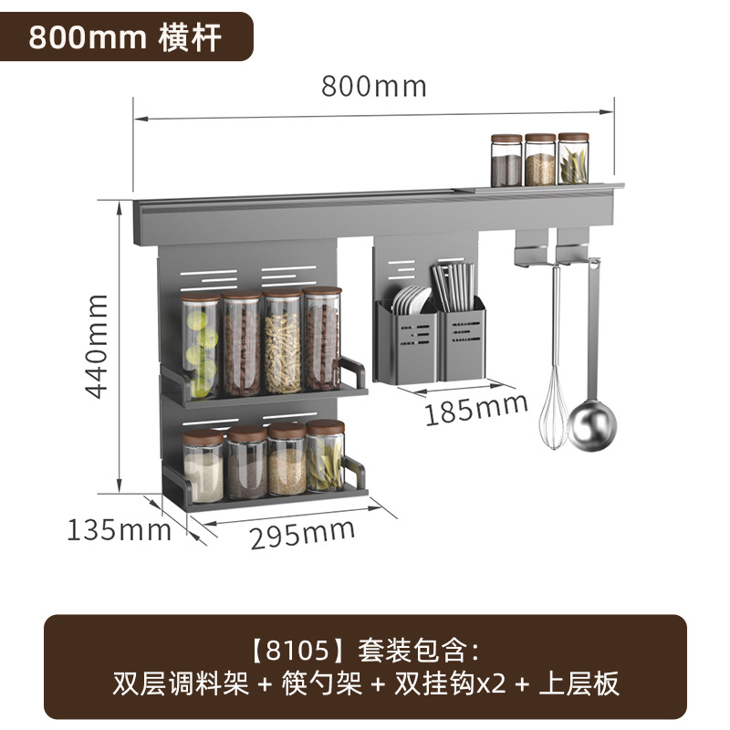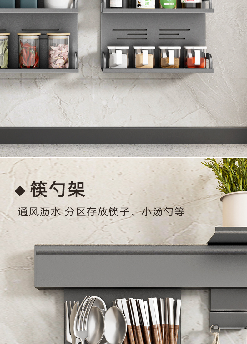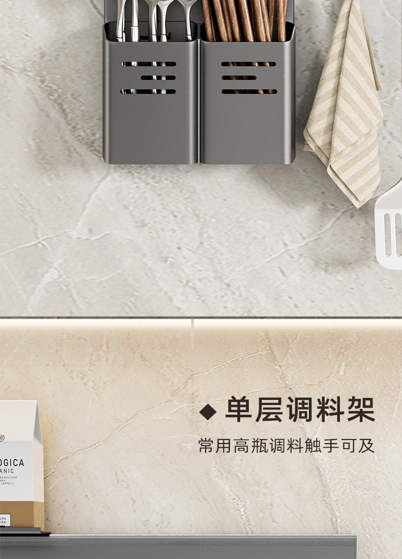 알루미늄 합금 주방 벽걸이 수납 선반 젓가락 및 숟가락 홀더 주방 조미료 선반 설치 간편 주방 수납 선반 설치 용이