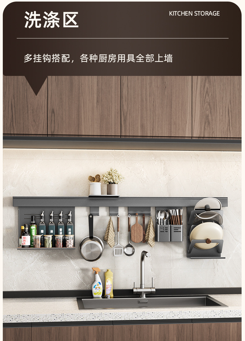 • 【1007】단층 양념걸이 + 냄비 뚜껑 걸이 + 젓가락과 숟가락 걸이 + 고리 4개