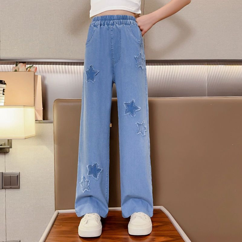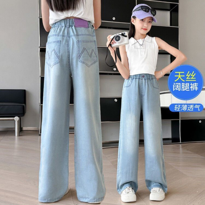 여아 바지 여름 스타일 루즈한 아동 캐주얼 모기 방지 얇은 여름 텐셀 데님 와이드 팬츠