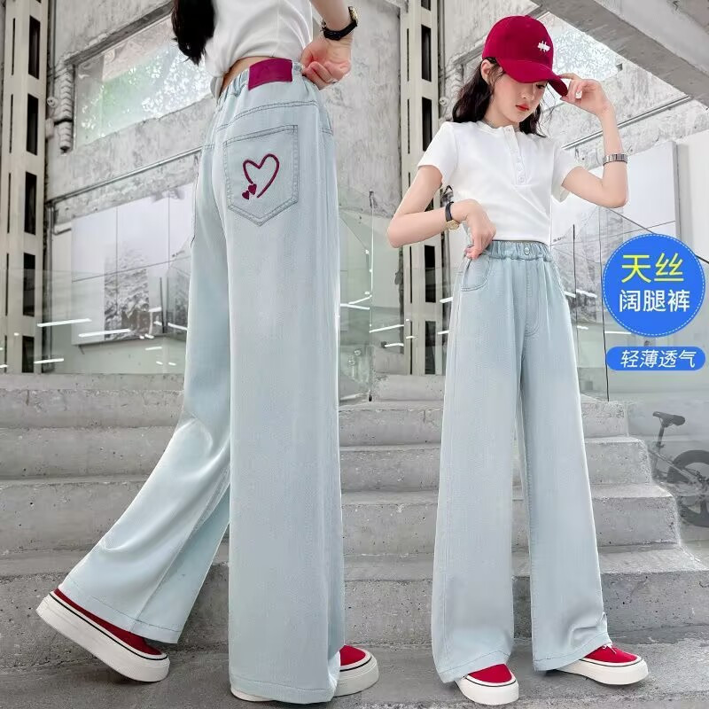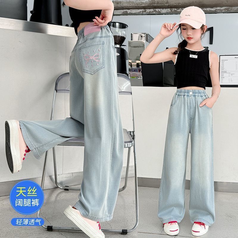 여아 바지 여름 스타일 루즈한 아동 캐주얼 모기 방지 얇은 여름 텐셀 데님 와이드 팬츠스토어 가기