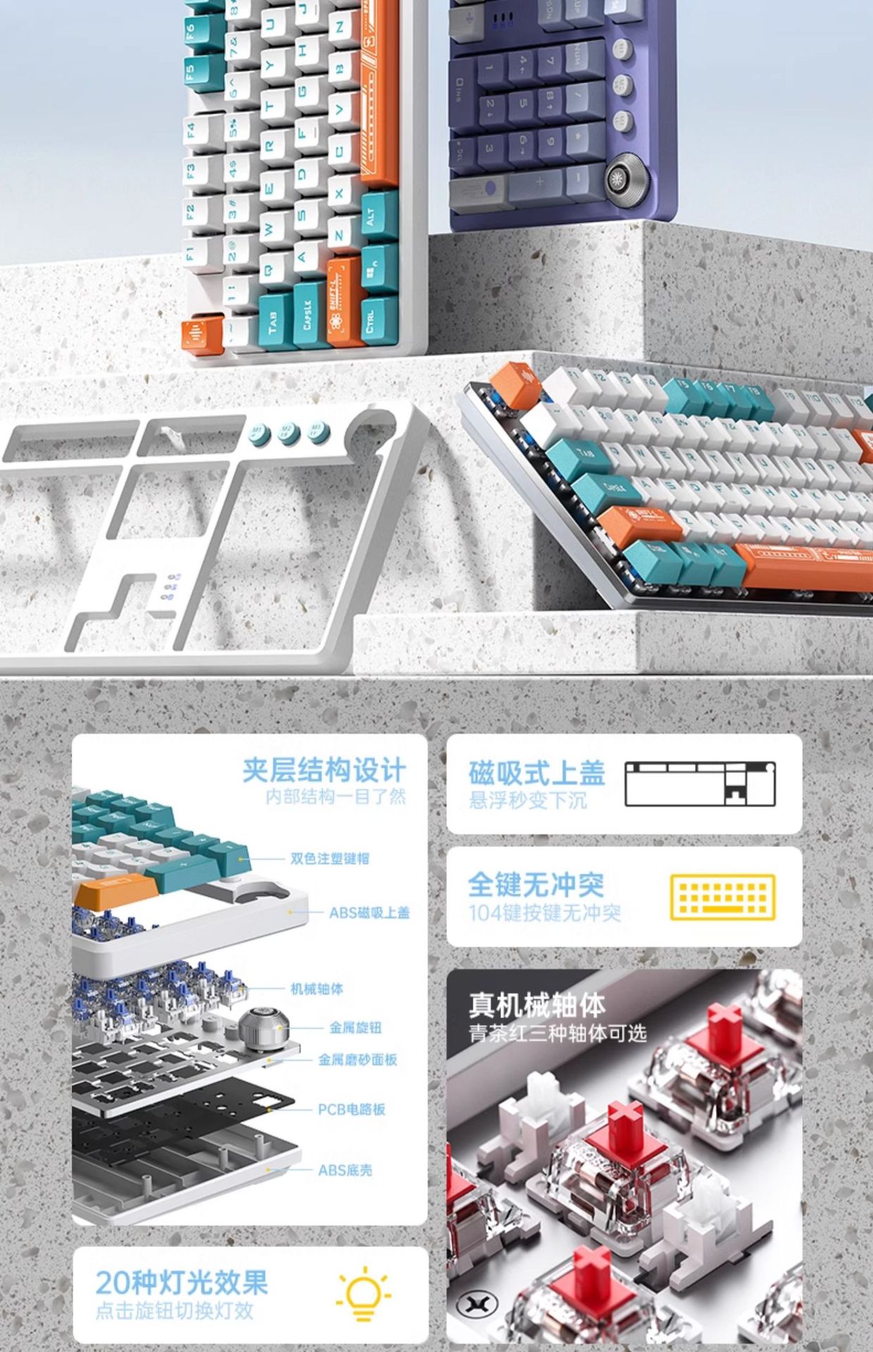 • 빨간색 축-[F2088 흰색] 혼합 조명 표준 버전-비자성 상부 커버-공식 표준